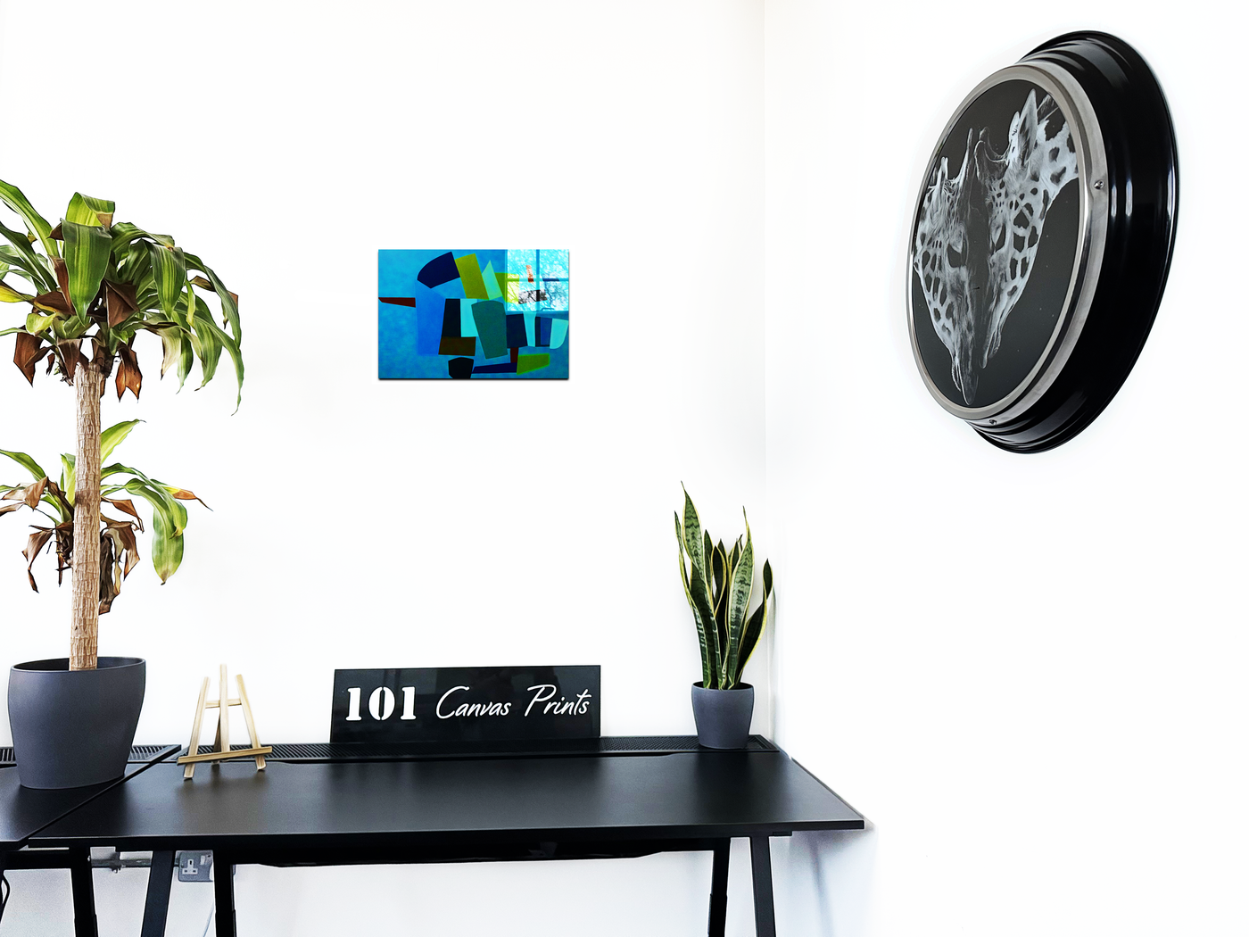 Rendered in our premium Acrylic medium, this meditation on balance achieves an extraordinary level of visual depth. The high-gloss finish dramatically enhances the intensity of the blues, creating an almost atmospheric effect that suggests both movement and stillness. The crystal-clear surface of the Acrylic adds a contemporary dimension that brings new life to the geometric forms, while its reflective qualities create subtle variations in how the piece is viewed from different angles - much like how perspective shapes the immigrant experience. This meaningful artwork would make a striking addition to any modern space, from a corporate environment to a private collection, where its themes of resilience and adaptation can spark important conversations about identity and belonging.