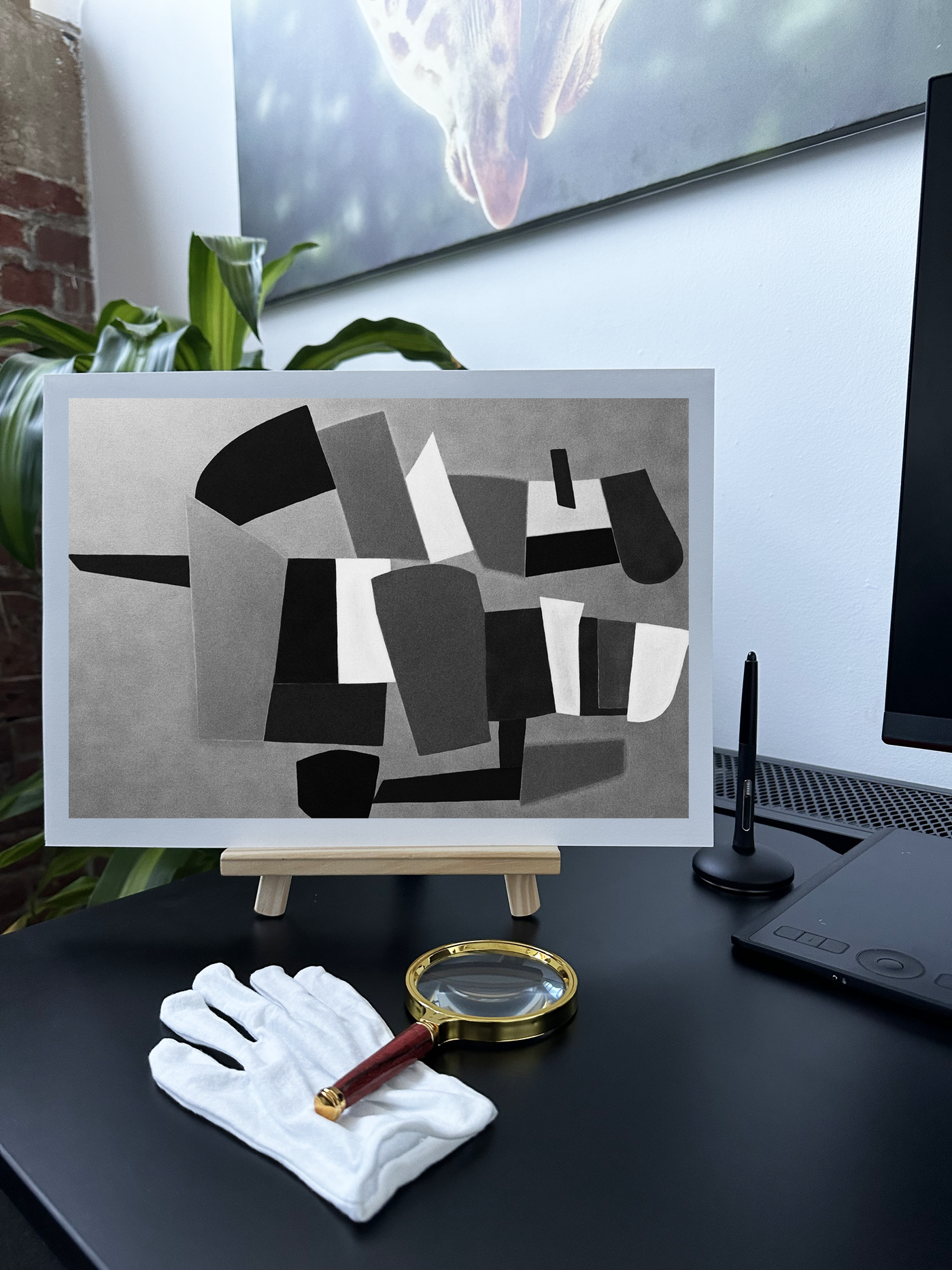 The Monochrome palette is predominantly cool and contemplative, dominated by various shades of Monochrome tones that create a sense of depth and reflection. Strategic touches of light & dark tonality add points of contrast and energy, suggesting moments of breakthrough or challenge. Our print enhancement team have preserved the precise edges and subtle colour transitions that make this piece so powerful, ensuring that every nuance of the artist's meditation on balance and adaptation remains intact.