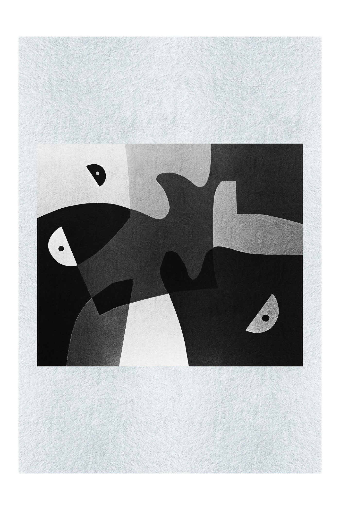 Expertly captured by the 101 Canvas Prints photography team, this vibrant abstract composition creates an intriguing interplay of organic shapes and bold Monochrome tones. The artwork features a masterful arrangement of curved forms and geometric segments that interlock like pieces of a sophisticated puzzle. Small circular details, reminiscent of watchful eyes, add an element of whimsy and intrigue to the composition, creating focal points that guide the viewer through the piece.