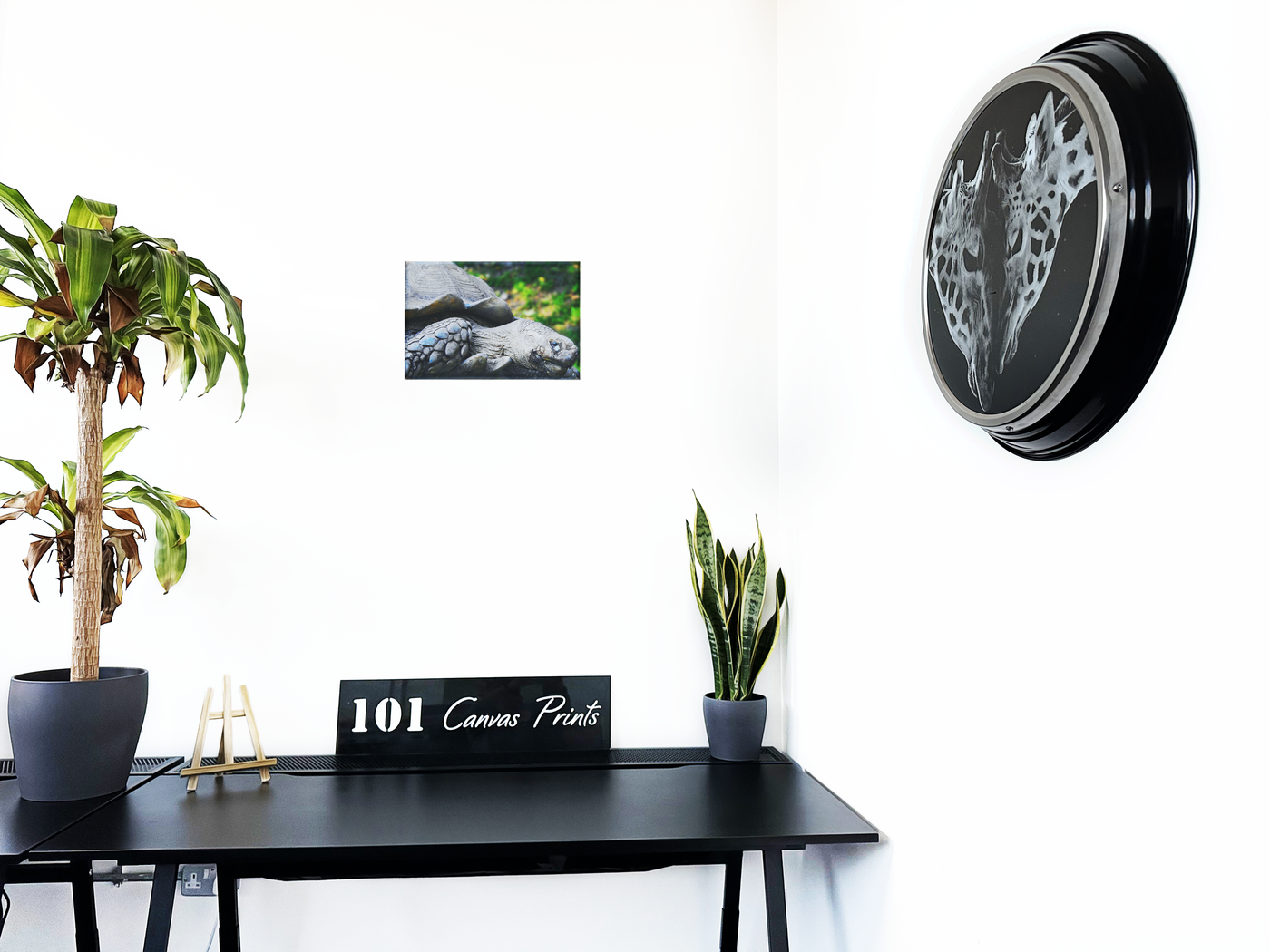 The Aldabra giant tortoise is the worlds largest species of tortoise. These majestic creatures are able to weigh up to 650 pounds and live to be over 150 years old, and if you are looking for art that is sure to be top conversation piece then look no further.
