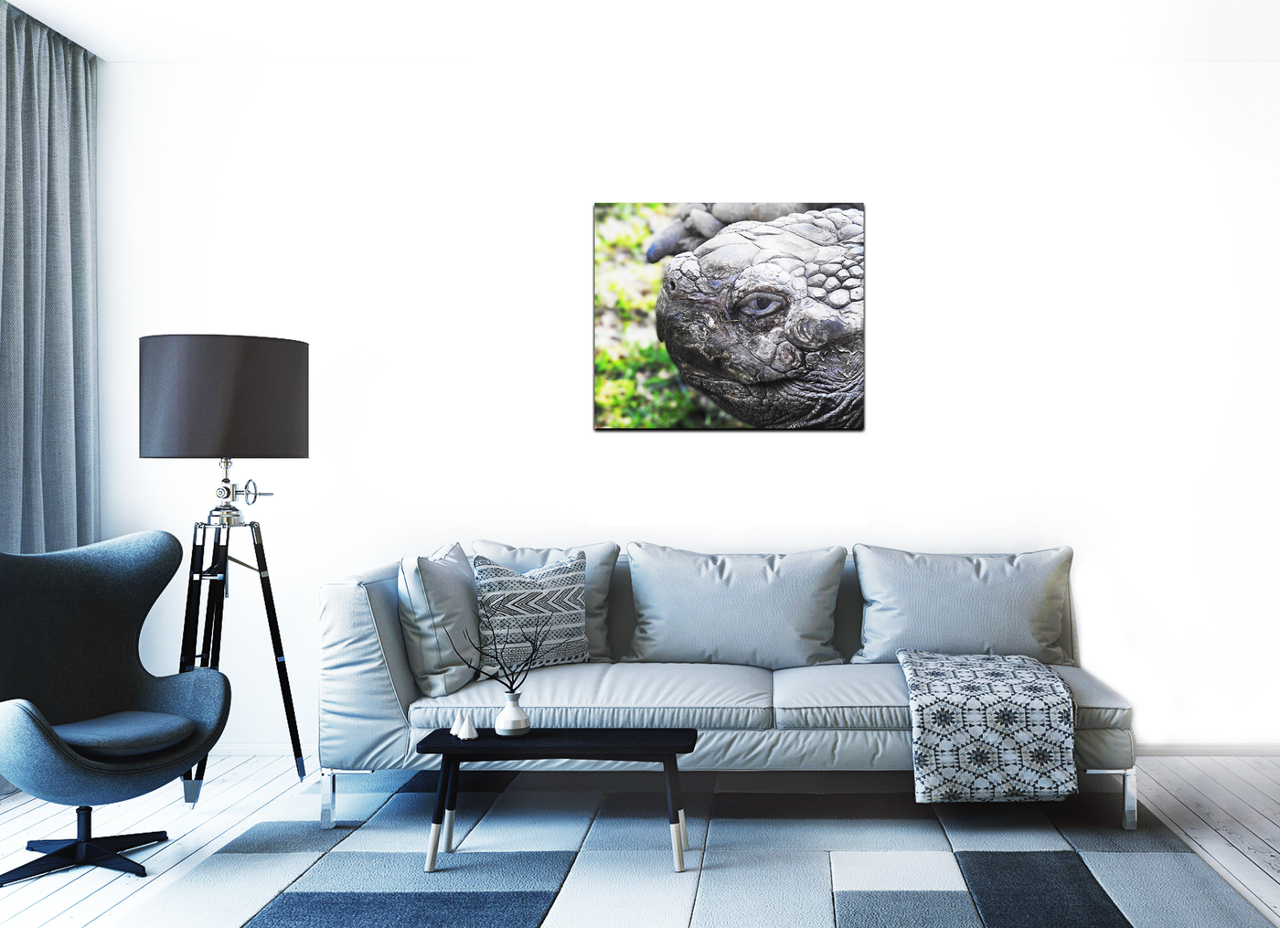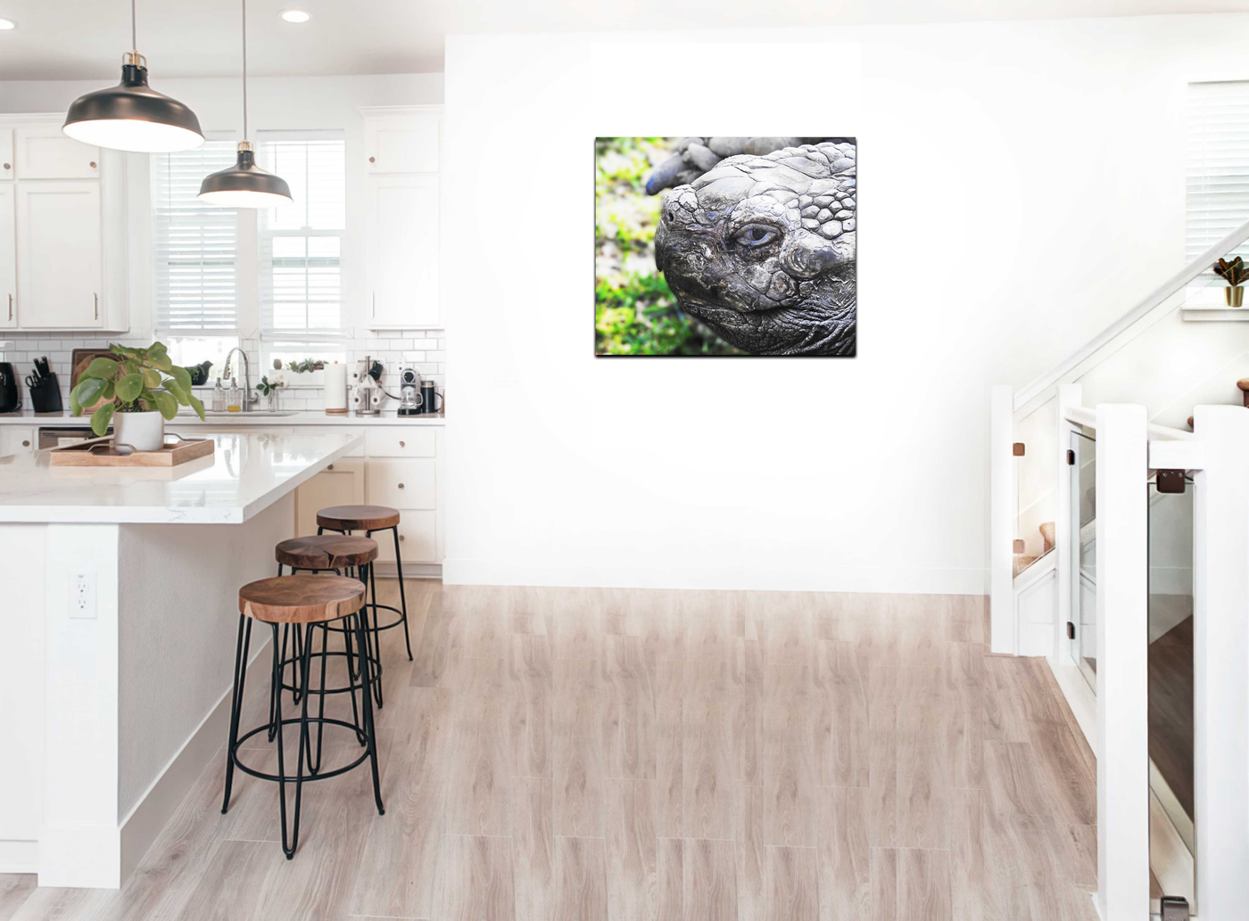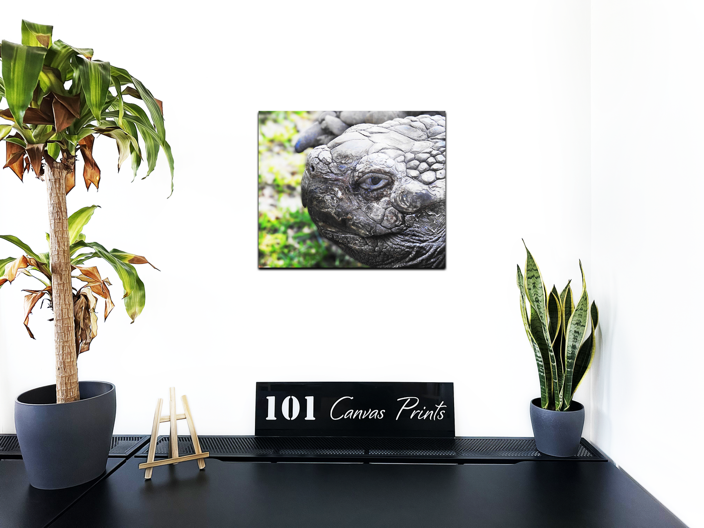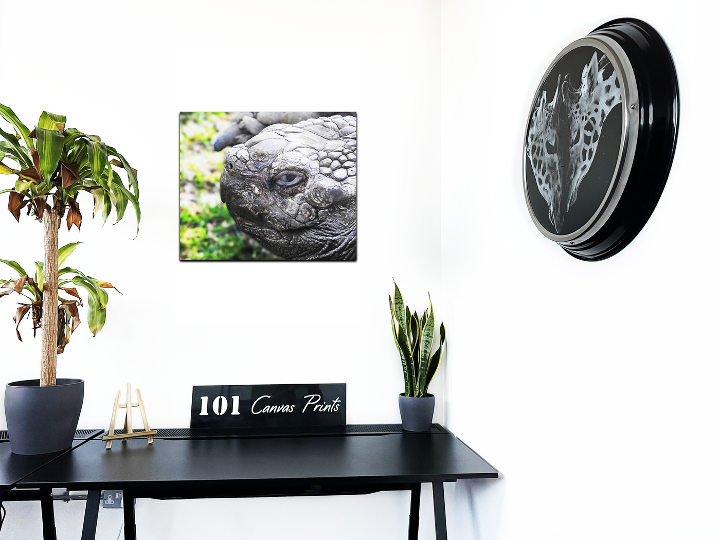 The Acrylic medium enhances the 101 Canvas Prints team's artistry, lending the image a depth and vibrancy that accentuates the tortoise's textural details and the subtle interplay of light across its features. The glossy finish creates a sense of dimensionality, making the tortoise's eye appear even more lifelike and engaging.