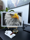This powerful portrait showcases the Bald Eagle's unwavering focus and regal demeanour. The bird's sharp eye, captured in stunning detail, seems to follow you across the room, creating an engaging and dynamic viewing experience that will captivate guests and family members alike.