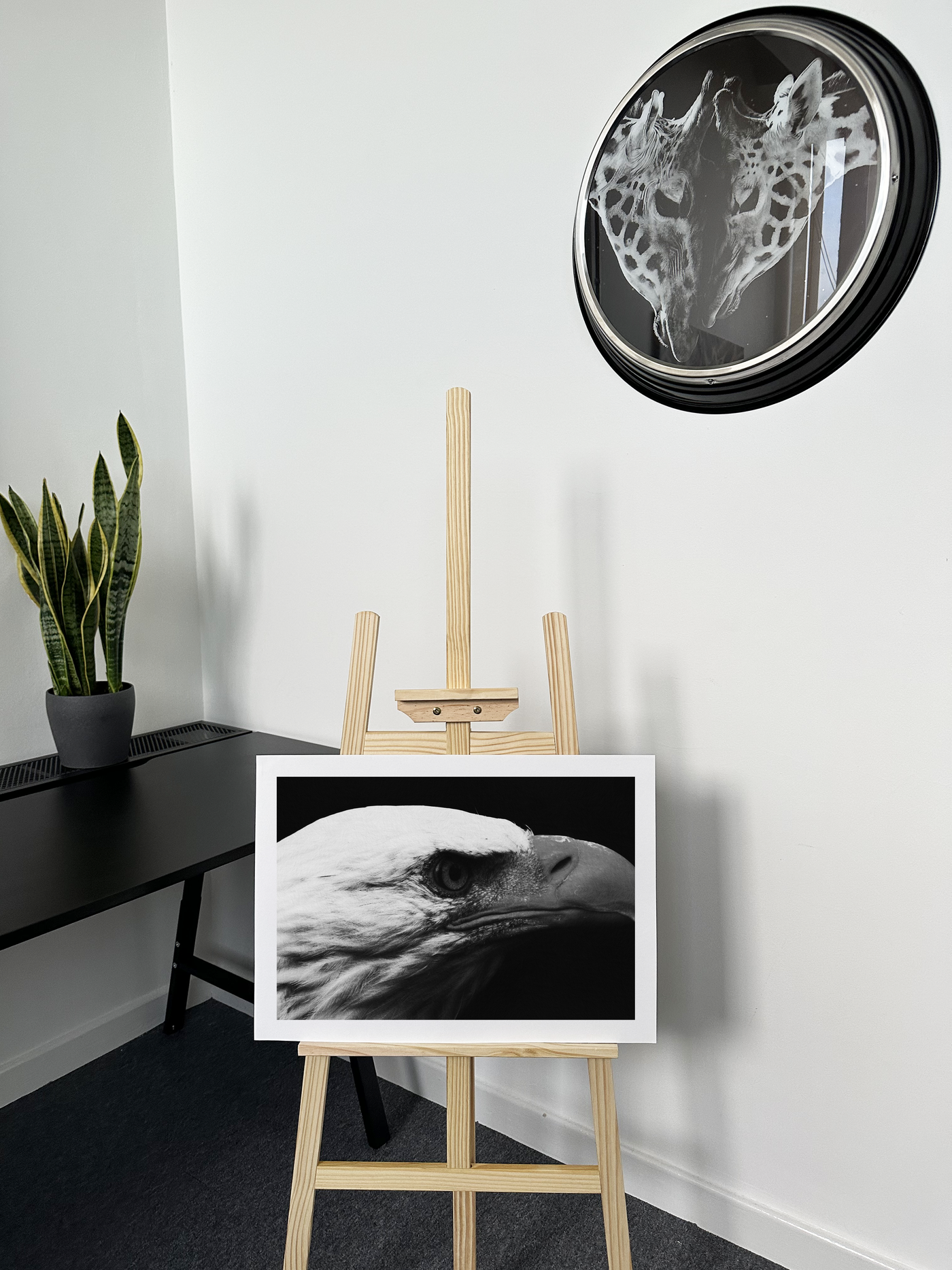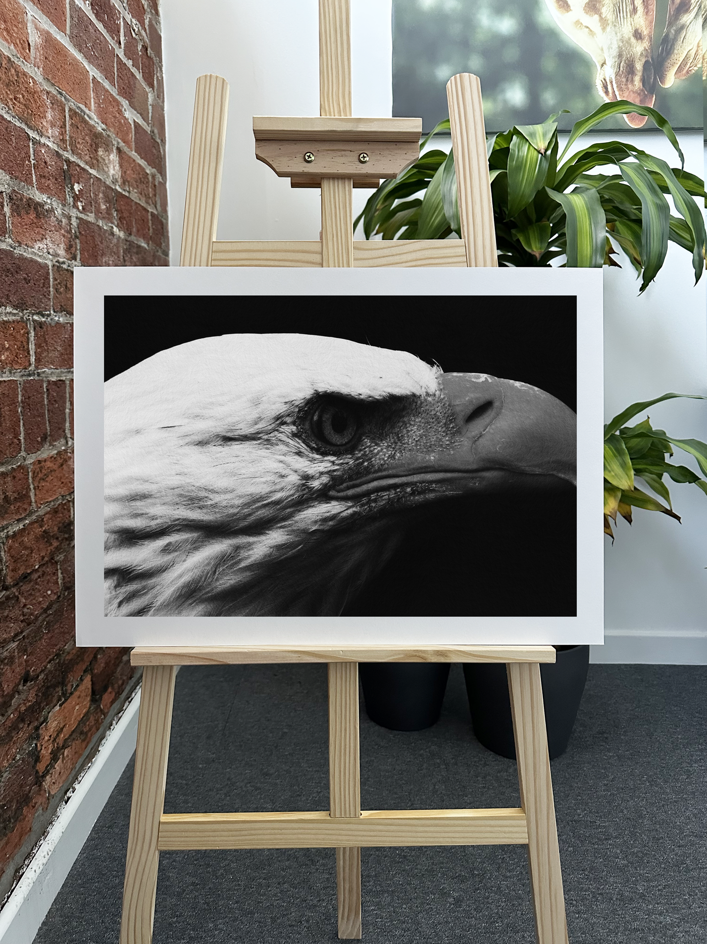 Our Bald Eagle Monochrome Fine Art print combines an incredibly detailed, high resolution photograph with vibrant tonality and a professional grade printing process.