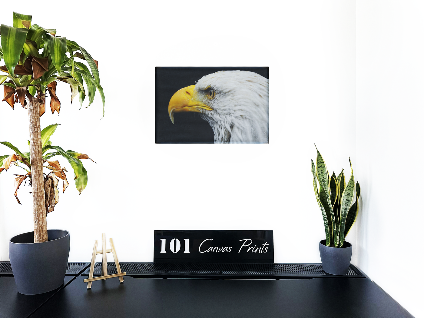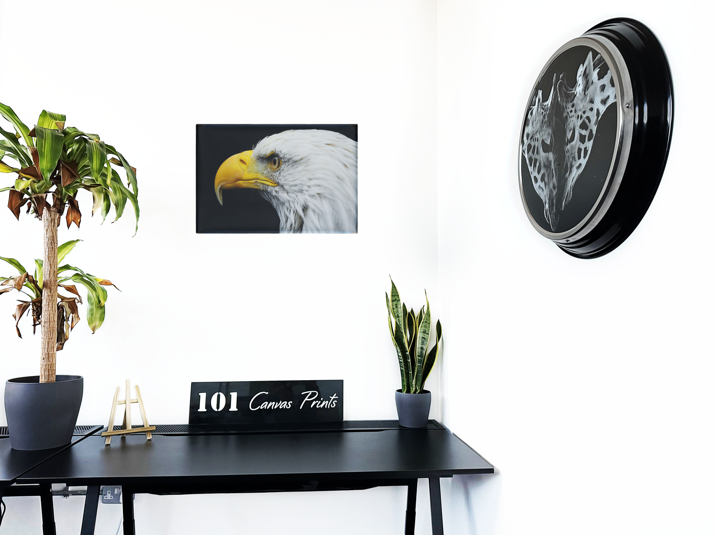 The 101 Canvas Prints team have showcased this Bald Eagle in a stunning close-up shot guaranteed to add detail and elegance to any space.