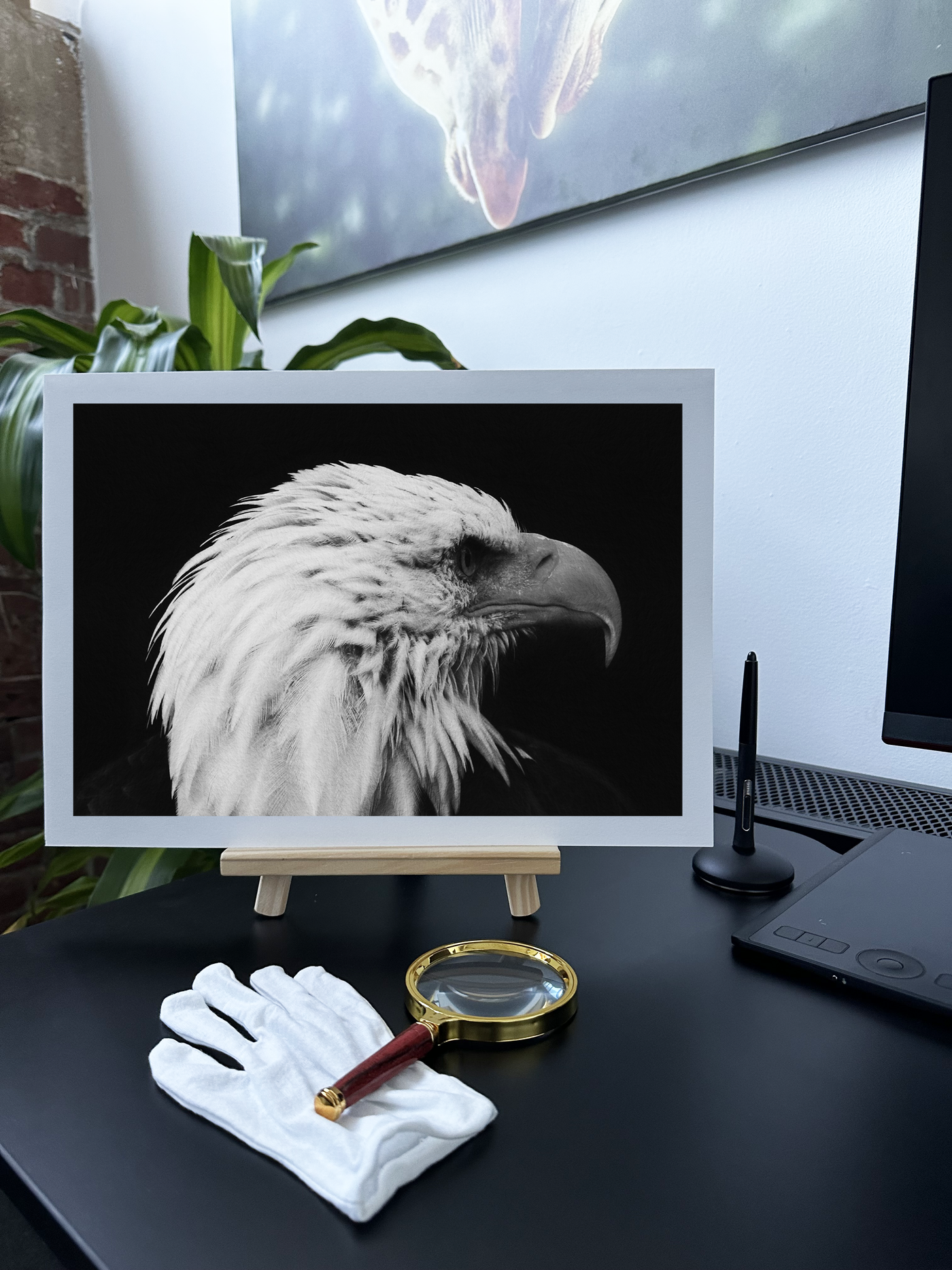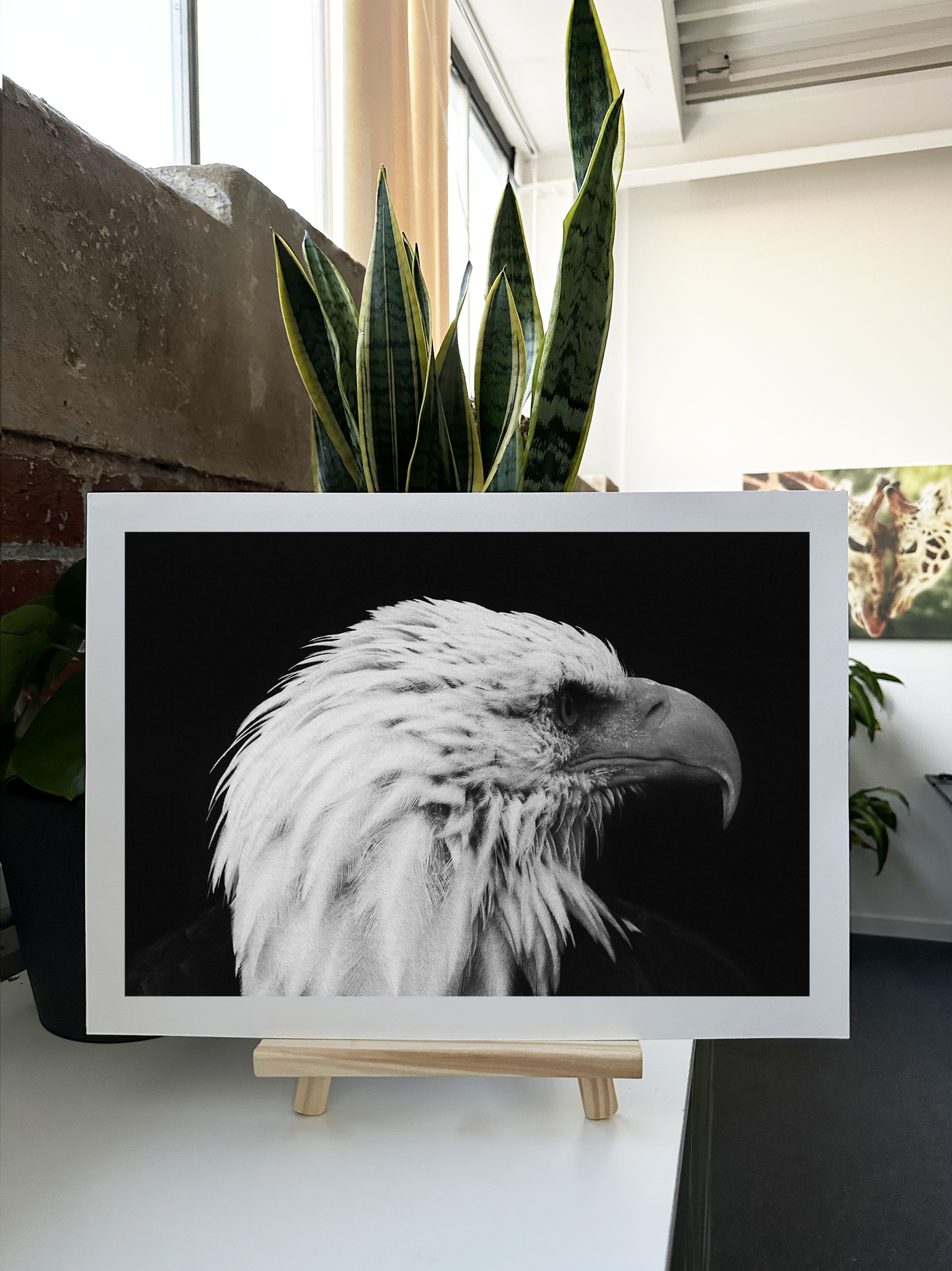 Our Bald Eagle Monochrome Fine Art prints combine an incredibly detailed, high resolution photograph with vibrant tonality and a professional grade printing process.