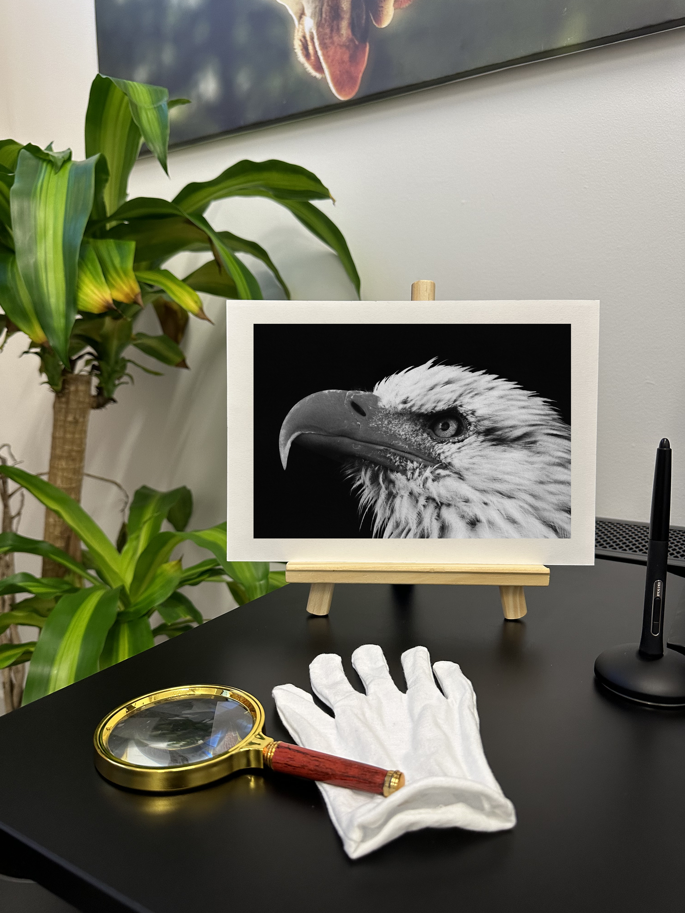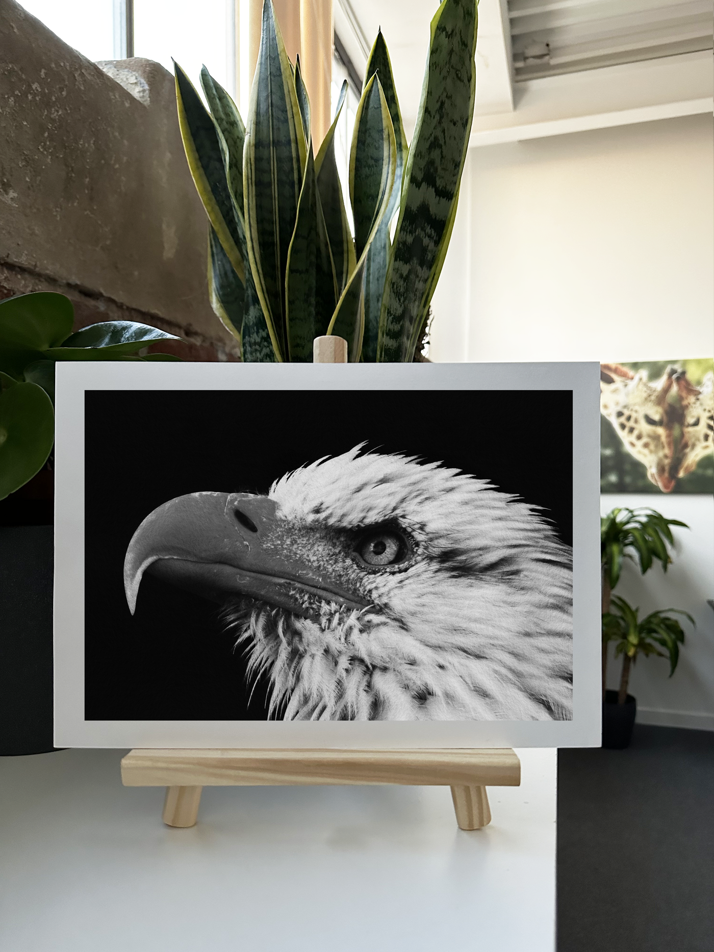 Our Bald Eagle Monochrome Fine Art print combines an incredibly detailed, high resolution photograph with vibrant tonality and a professional grade printing process.