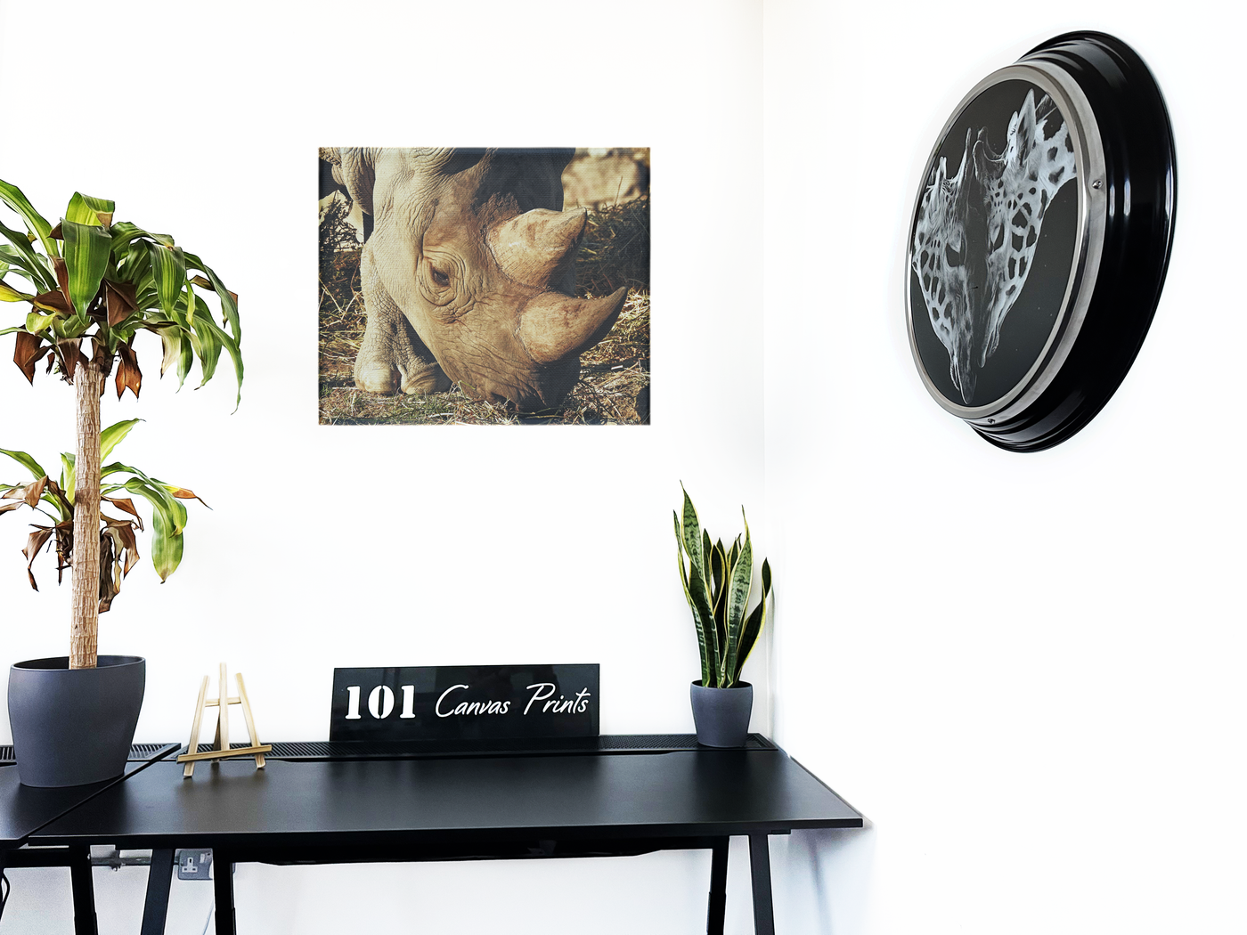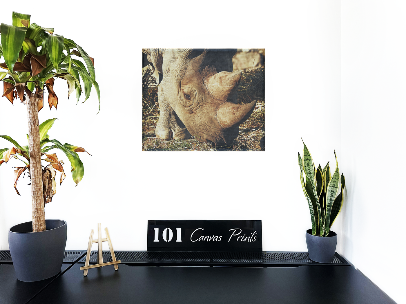 Masterfully captured by the 101 Canvas Prints photography team, this intimate portrait of a Rhinoceros reveals the extraordinary textures and details of one of nature's most magnificent creatures. The close-up perspective emphasises the intricate patterns of the rhino's weathered skin, creating a study in natural texture that resembles ancient terrain. Every wrinkle and fold tells a story, while the gentle eye provides a window into the soul of this powerful yet vulnerable species.