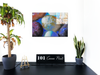 The Acrylic medium brings an astonishing clarity and depth to this lithic landscape. The colour palette is a celebration of nature's diversity, ranging from earthy tones to almost cosmic hues. The central stone appears like a miniature planet, its creamy surface marked with swirls of pale blue and subtle ochre tones. Around it, smaller stones showcase a spectrum of colours - deep purples, rich browns, and mottled greys - their surfaces varying from glassy smooth to intriguingly textured. The background glows with an intense, electric blue that infuses the entire scene with a sense of mystery and magic.