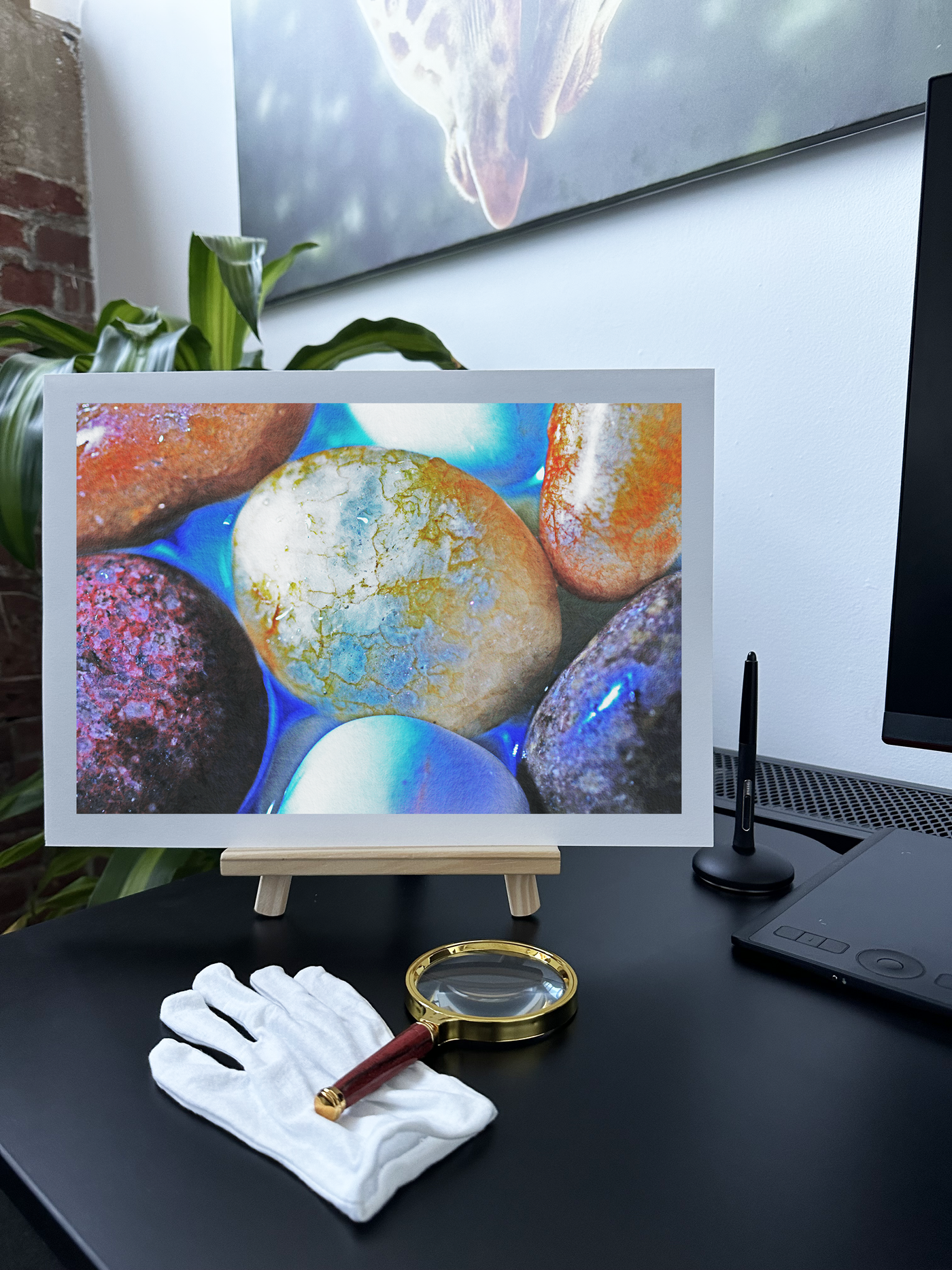 Our carefully handmade fine art prints are produced on Hahnemühle 308 matte cotton rag paper using Epson archival inks for exceptional detail and color accuracy. Each print features clean, precise edges and a textured surface that brings depth and richness to your chosen artwork, creating a gallery-worthy presentation.