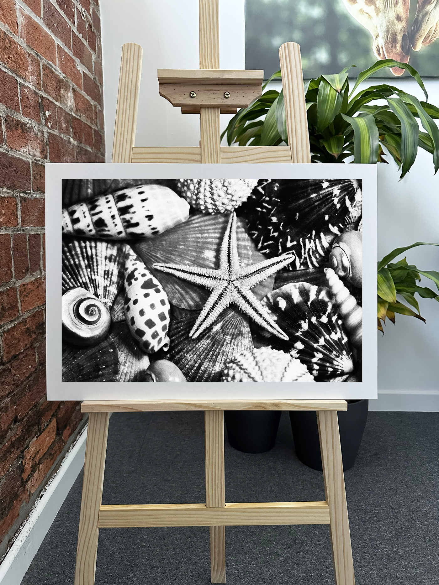 From our Aquatic collection, this is a spectacular, Monochrome bursting image from the 101 Canvas Prints team, featuring Calico, Conch and Cerith seashells.
