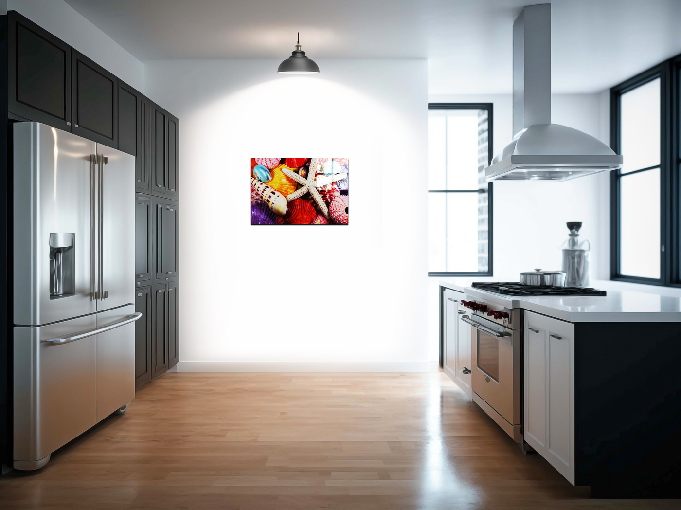 Another of our Aquatic collection and with our Asteroidea set, this beautiful image from the 101 Canvas Prints team features the simple Beaded Asteroidea starfish on a colour-popping backdrop of stunning seashells.