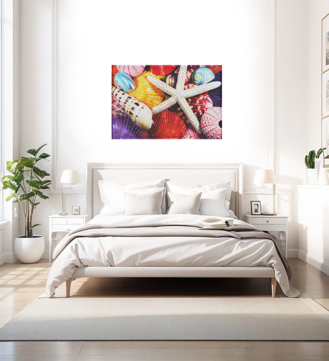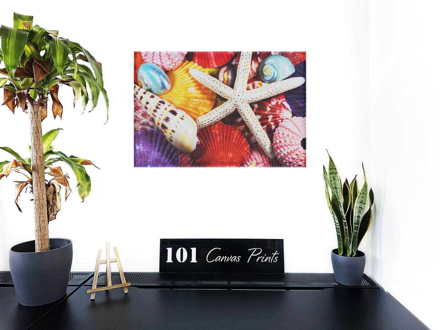 Another of our Aquatic collection and with our Asteroidea set, this beautiful image from the 101 Canvas Prints team features the simple Beaded Asteroidea starfish on a colour-popping backdrop of stunning seashells.
