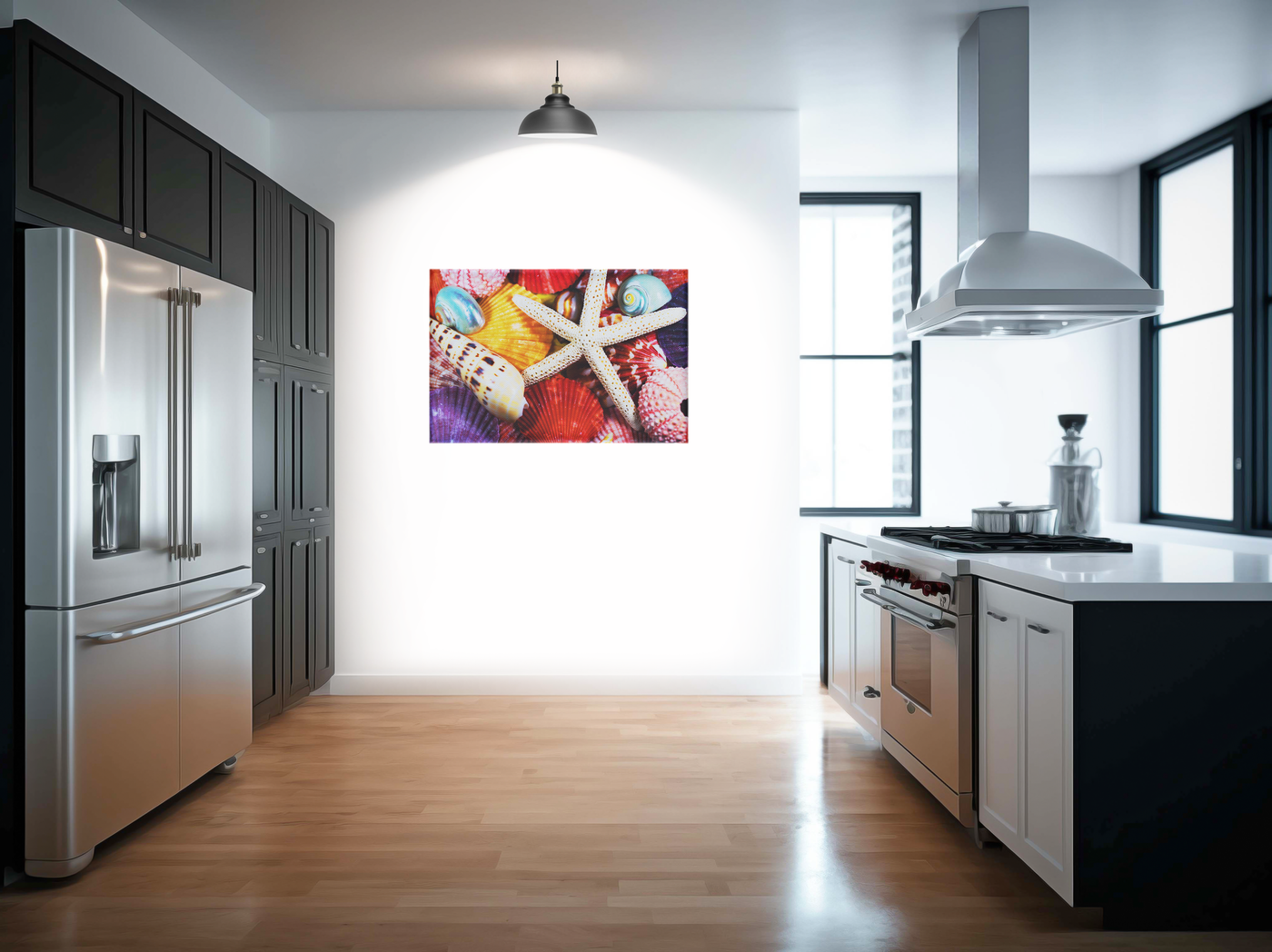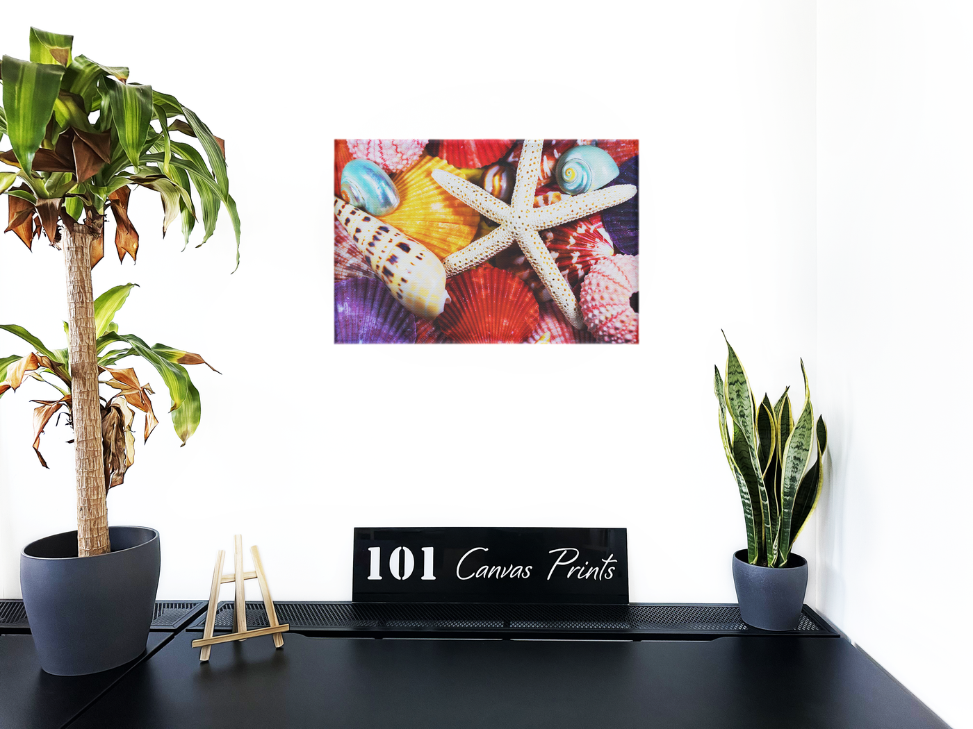 Another of our Aquatic collection and with our Asteroidea set, this beautiful image from the 101 Canvas Prints team features the simple Beaded Asteroidea starfish on a colour-popping backdrop of stunning seashells.