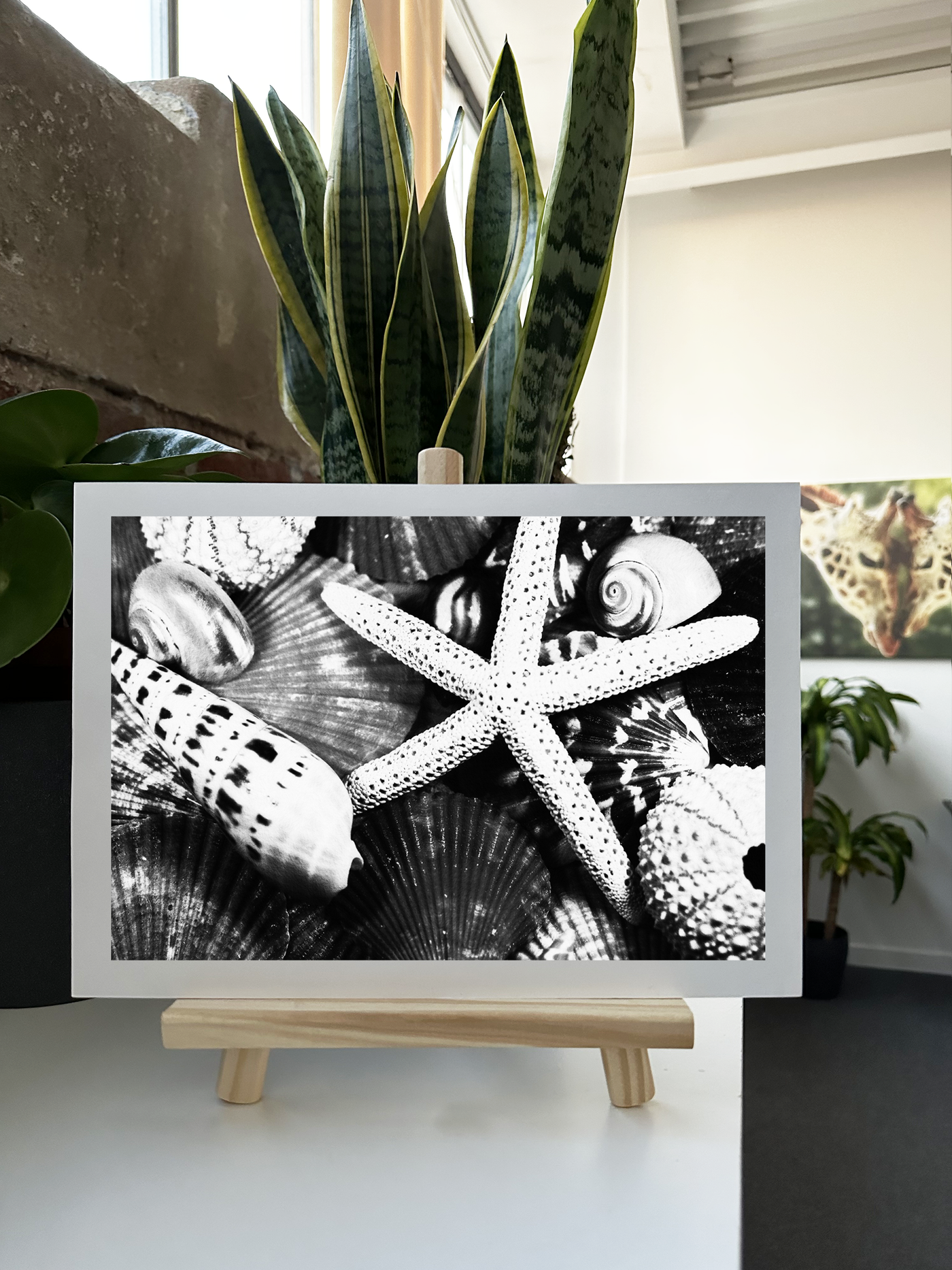 Another of our Aquatic collection and with our Asteroidea set, this beautiful image from the 101 Canvas Prints team features the simple Beaded Asteroidea starfish on a Monochrome popping backdrop of stunning seashells.