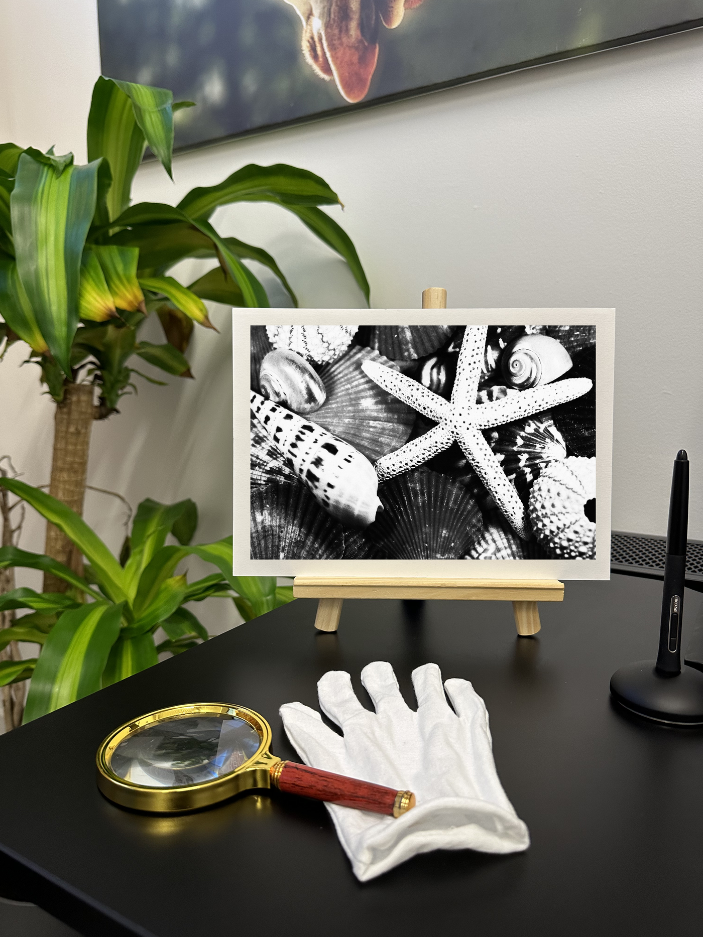Our carefully handmade monochrome fine art prints are produced on Hahnemühle 308 matte cotton rag paper using Epson archival inks for exceptional detail and color accuracy. Each print features clean, precise edges and a textured surface that brings depth and richness to your chosen artwork, creating a gallery-worthy presentation.