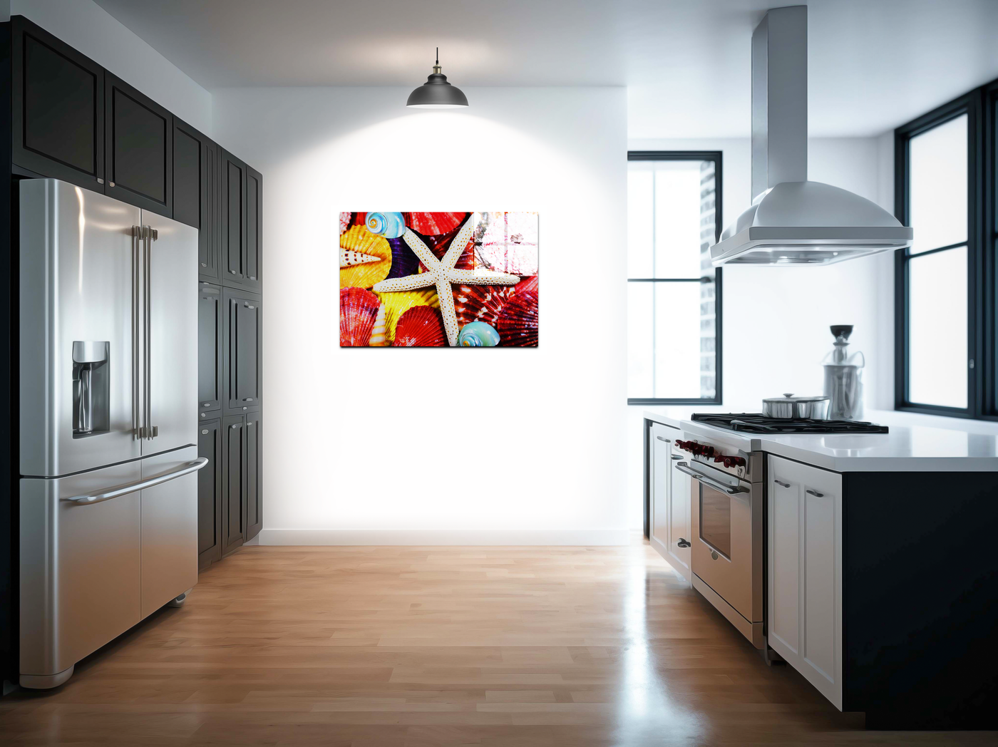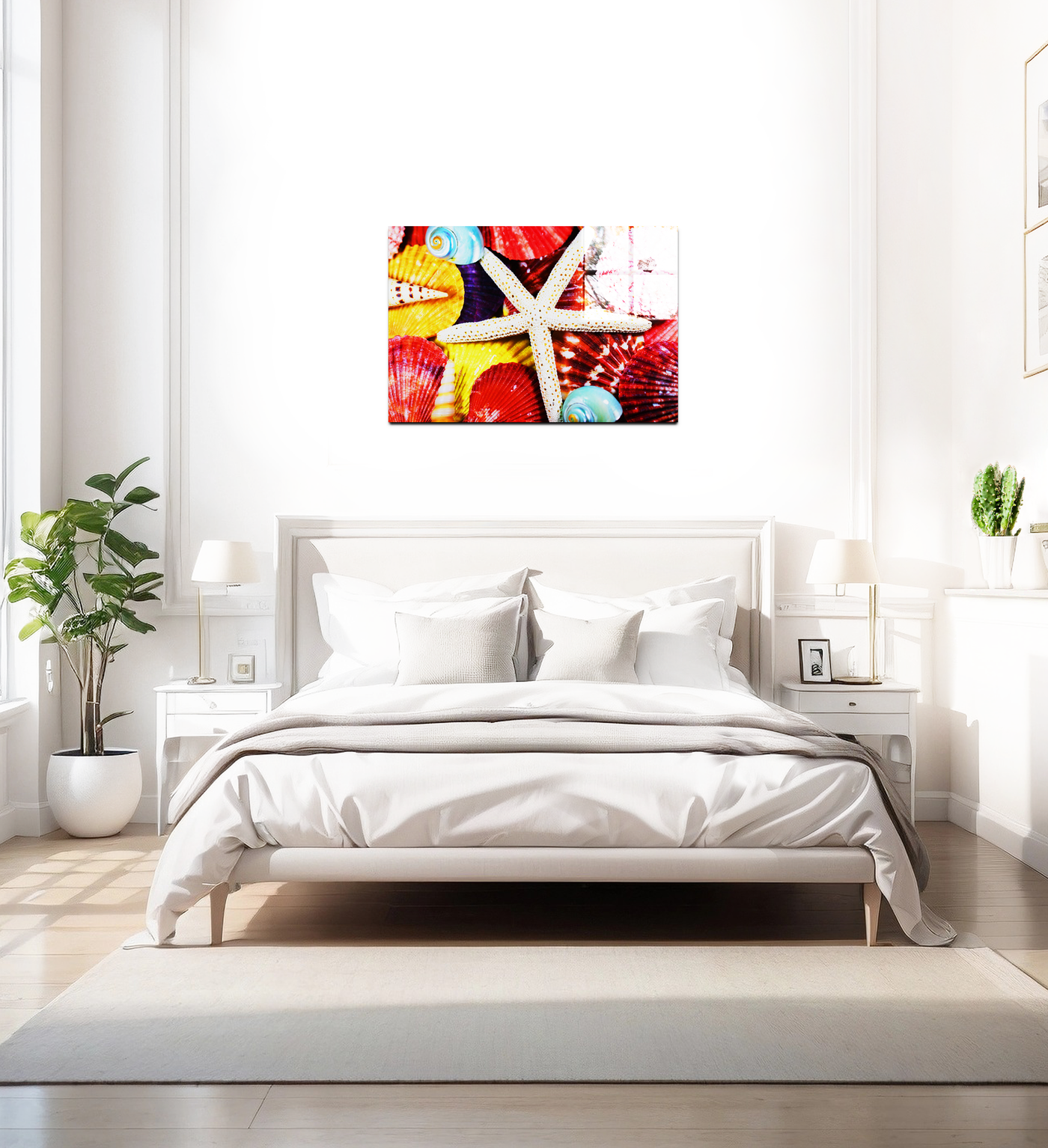 Like the Asteroidea Beaded Starfish II, this third image from the 101 Canvas Prints team features the simple Beaded Asteroidea starfish on a colour-popping backdrop of stunning seashells.