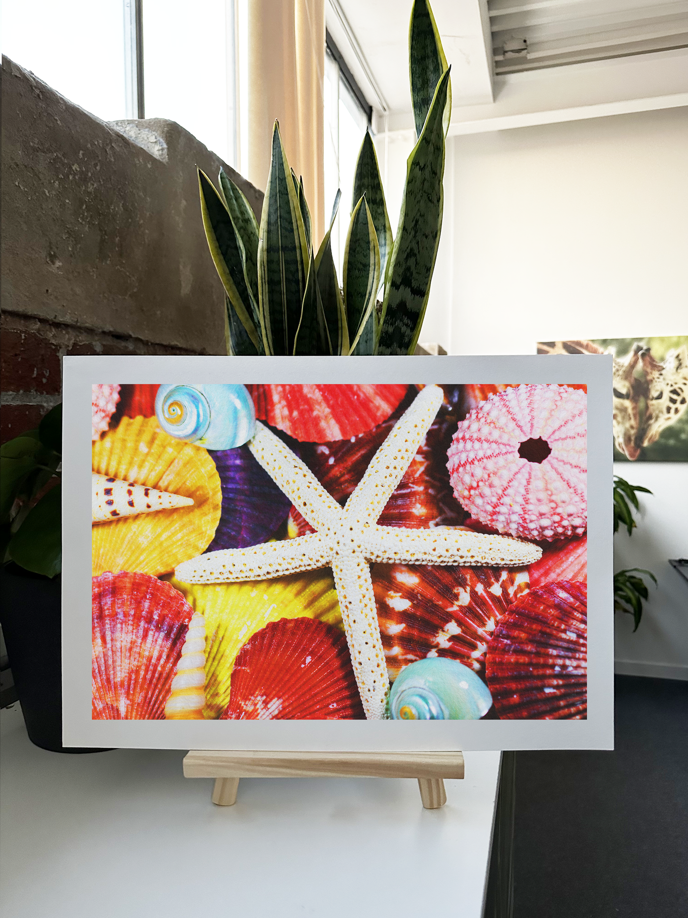Like the Asteroidea Beaded Starfish II, this third image from the 101 Canvas Prints team features the simple Beaded Asteroidea starfish on a colour-popping backdrop of stunning seashells.