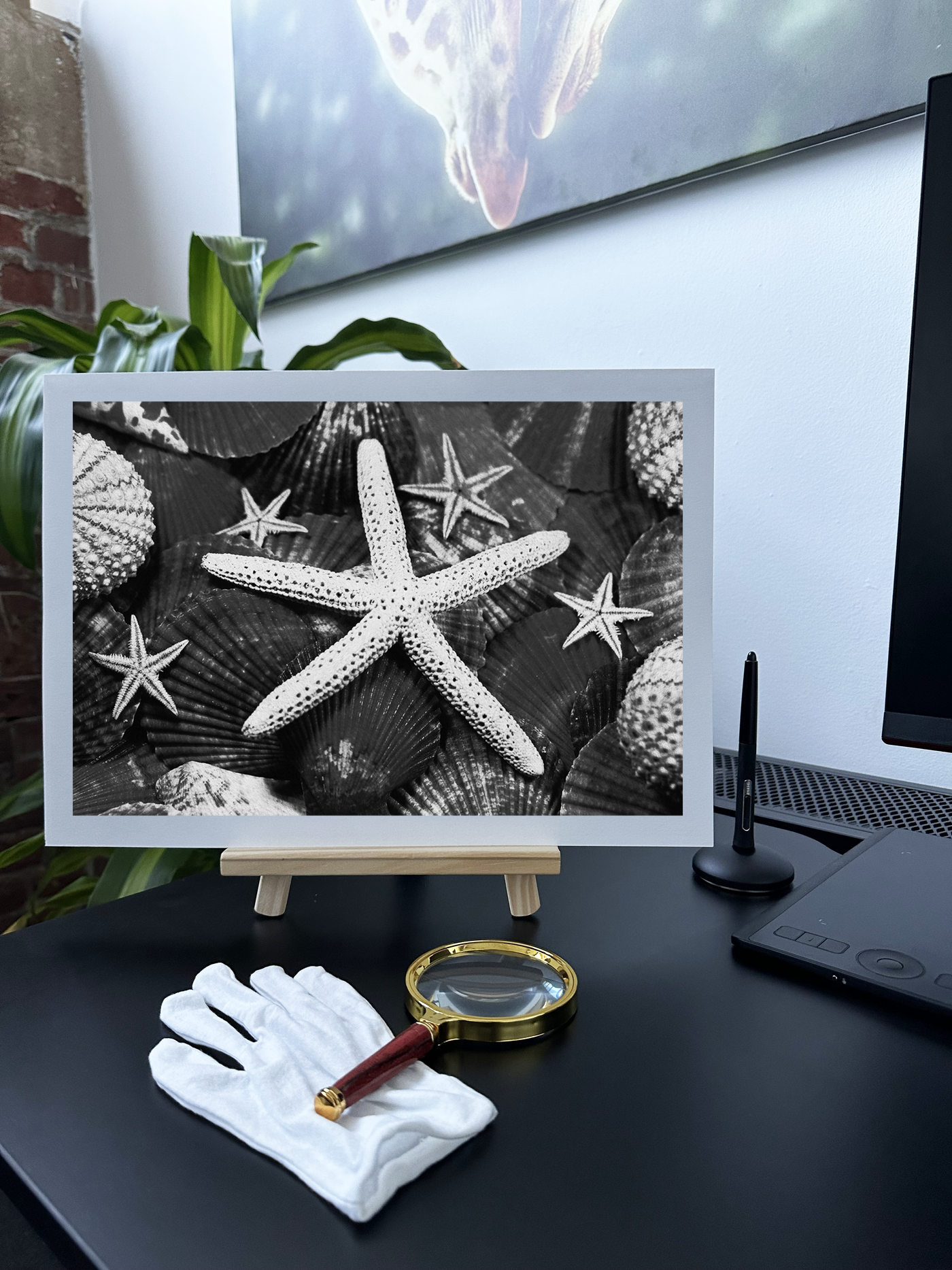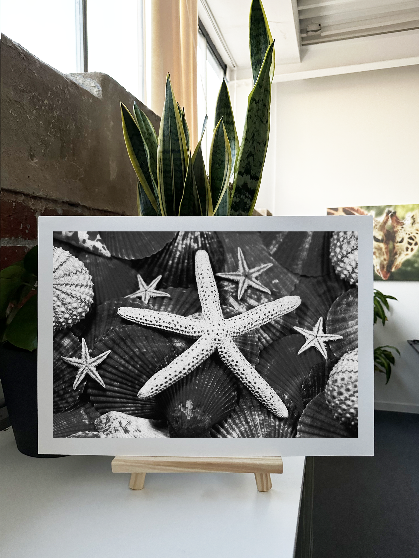 Asteroidea Finger & Beaded Starfish - Monochrome Fine Art Print - Aquatic Art Category