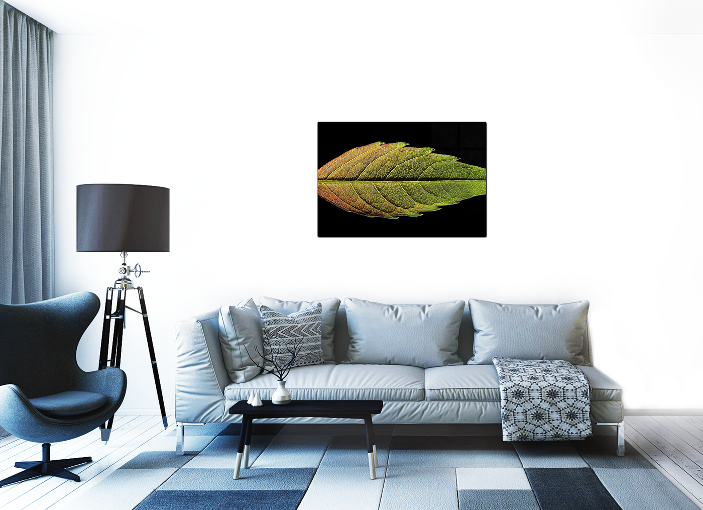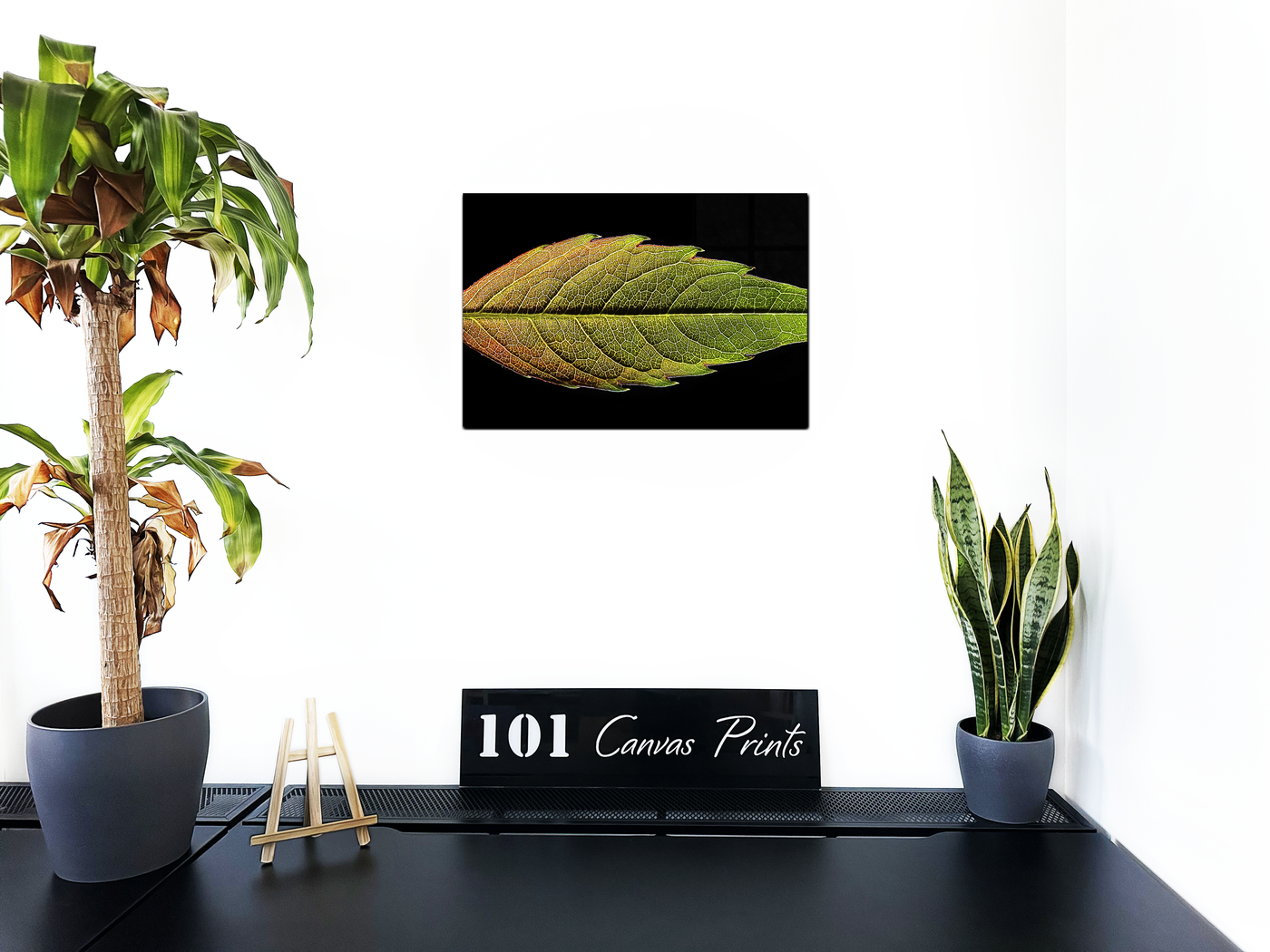 When produced as an acrylic-set print, this image takes on a new dimension of depth and luminosity. The high-gloss finish of the Acrylic dramatically enhances the contrast between the leaf and the dark background, making the leaf appear to float in space. The Acrylic medium intensifies the colours, bringing out the warmth of the autumnal tones and the freshness of the greens, while also highlighting the intricate network of veins that give the leaf its structure.