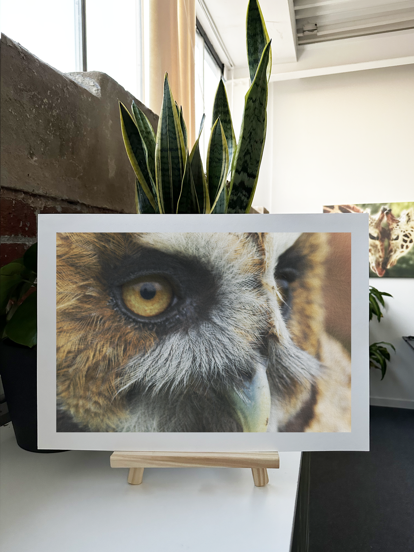 To add even more interest and drama to this unique print, our professional print enhancers have enhanced the Owls fur texture to the background of the image to echo the texture and feel of the artwork when printed using our high quality inks and materials.