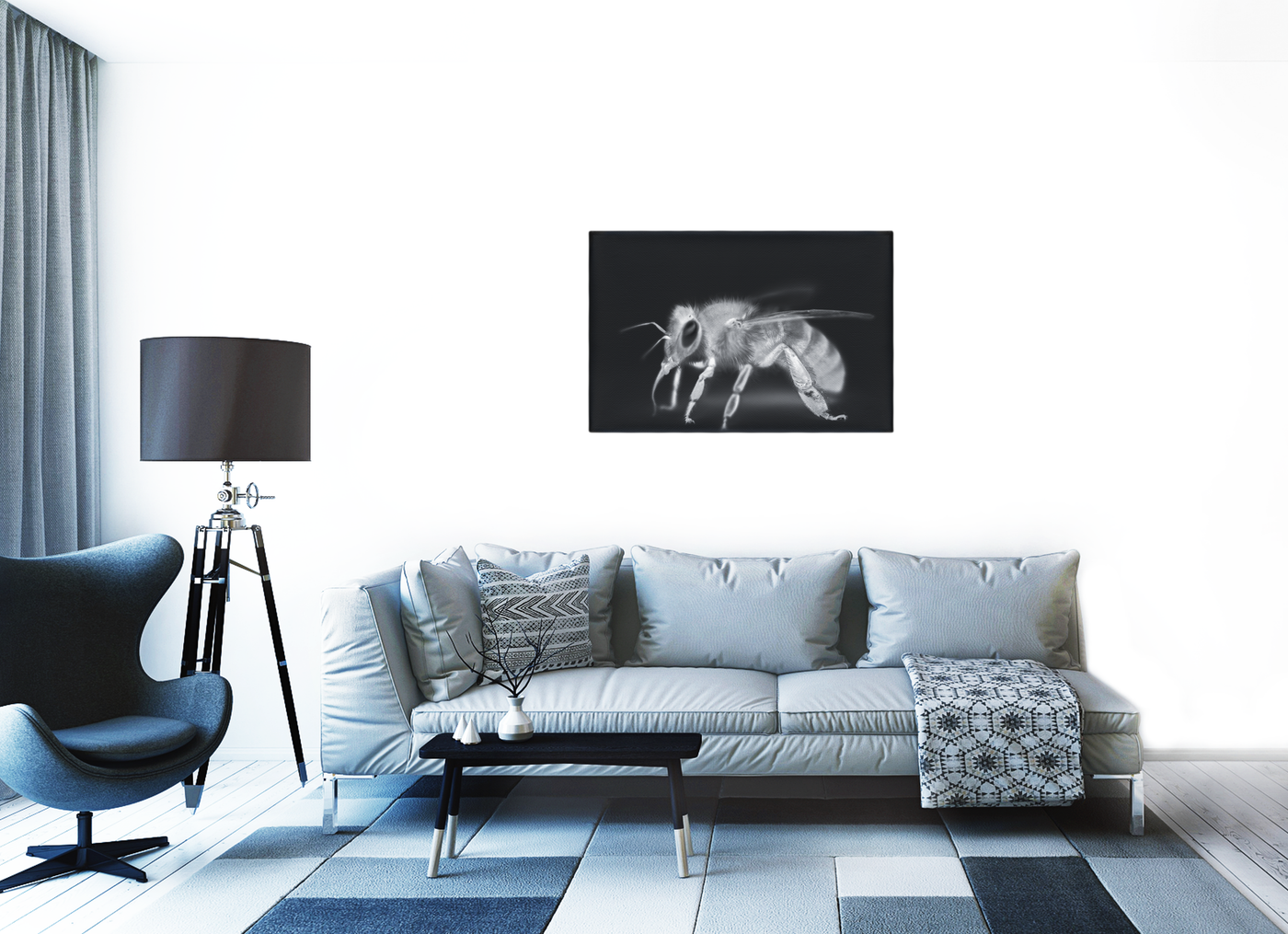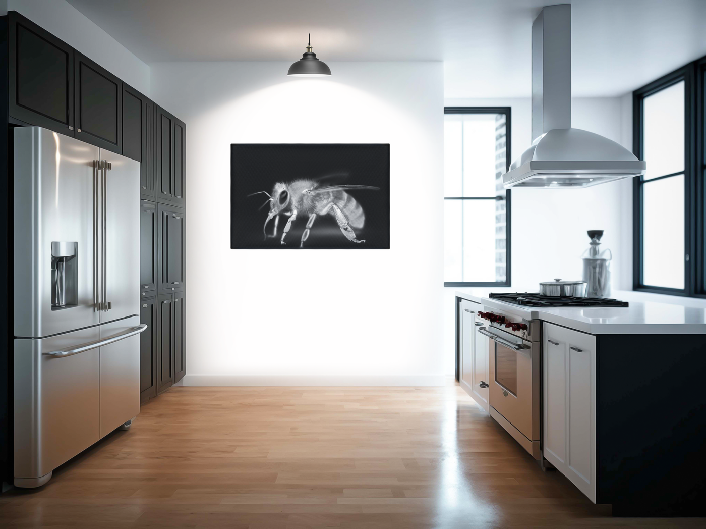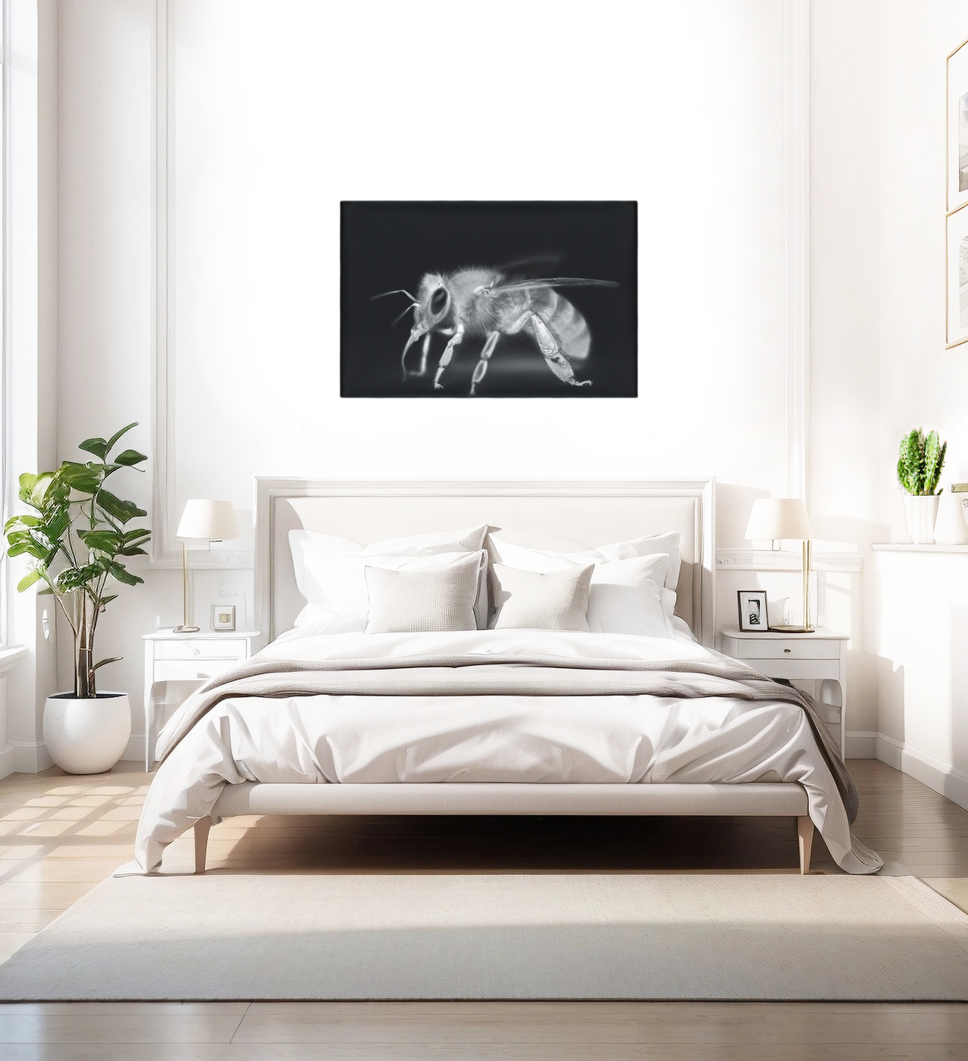 Our advanced printing techniques ensure that every nuance of this remarkable photograph is faithfully reproduced on Canvas. From the delicate antennae to the segmented legs, each aspect of the bee's form is rendered with exquisite detail, allowing viewers to appreciate the complexity of its structure.