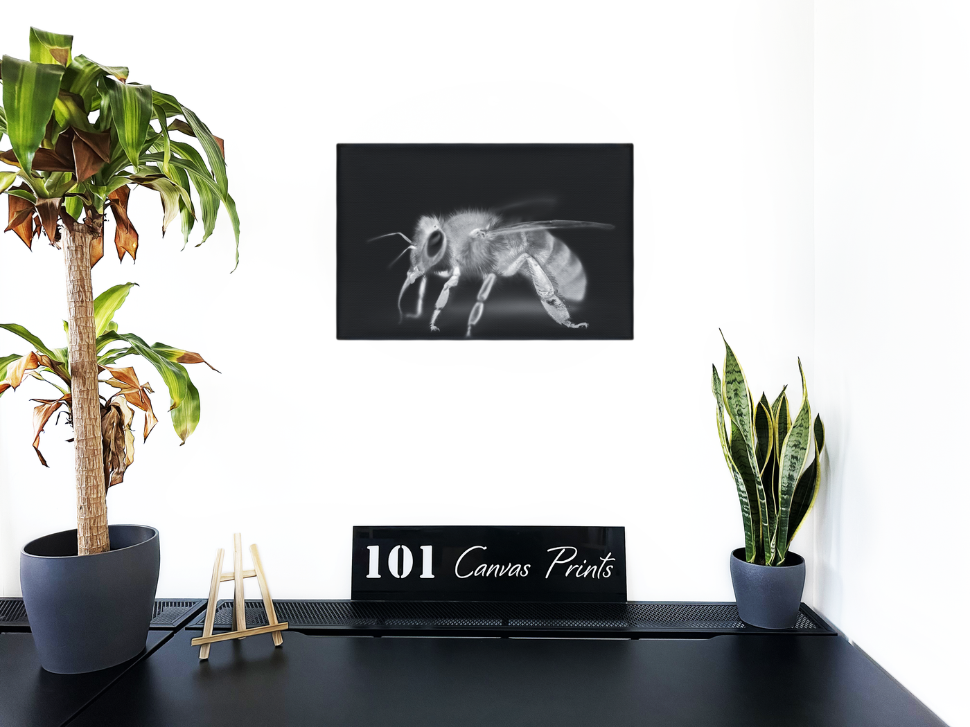 Bee in Monochrome Black - Canvas Print - Wildlife Category