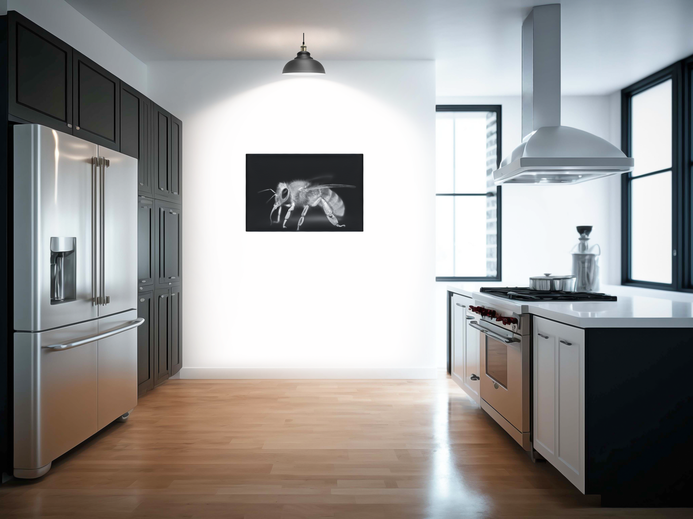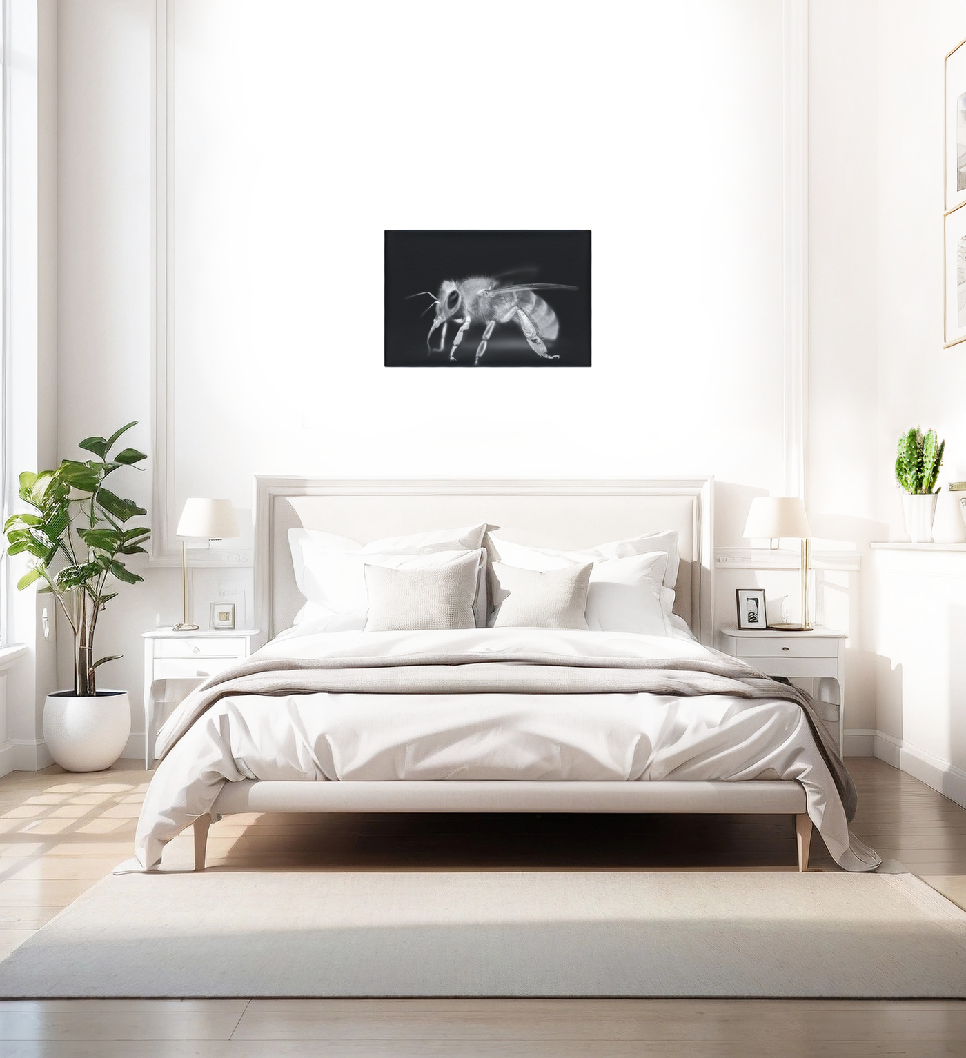 Our advanced printing techniques ensure that every nuance of this remarkable photograph is faithfully reproduced on Canvas. From the delicate antennae to the segmented legs, each aspect of the bee's form is rendered with exquisite detail, allowing viewers to appreciate the complexity of its structure.