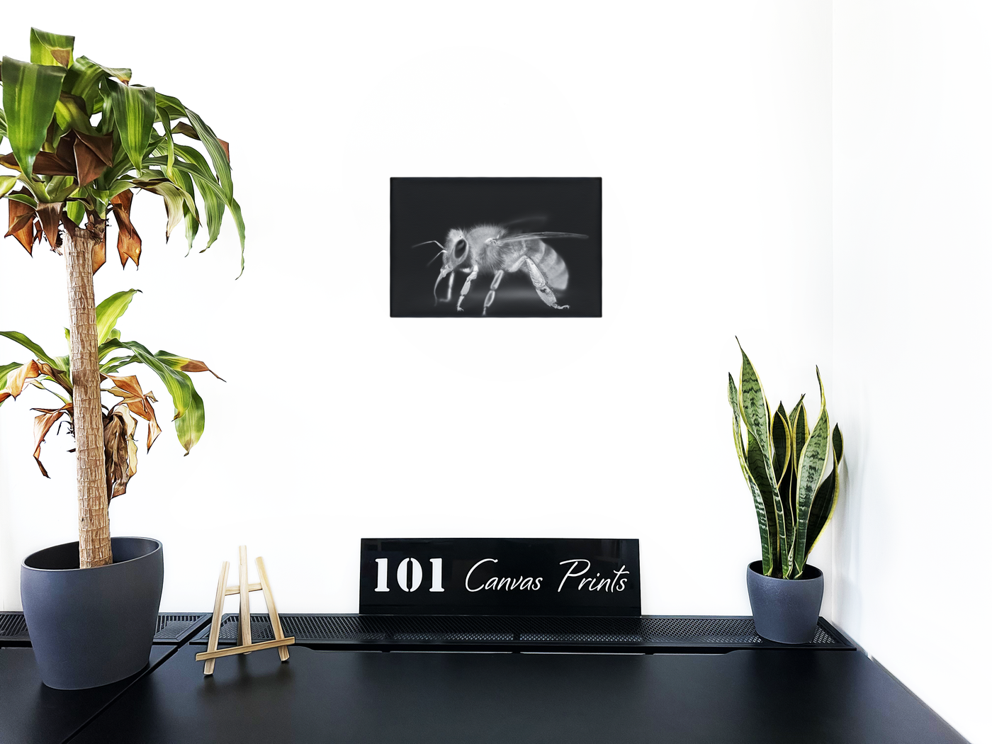 Bee in Monochrome Black - Canvas Print - Wildlife Category