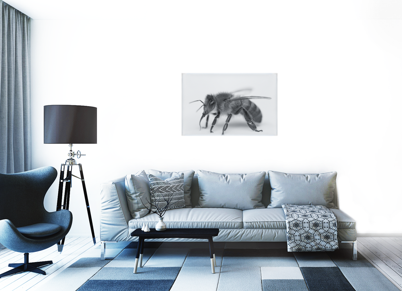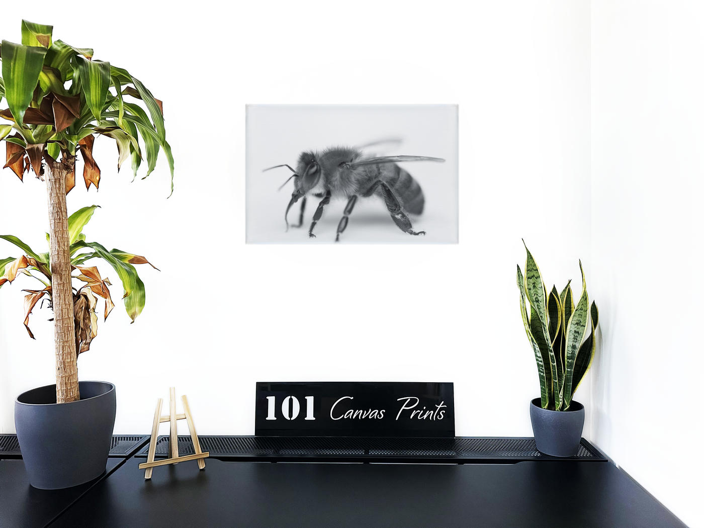 Bee in Monochrome White - Canvas Print - Wildlife Category