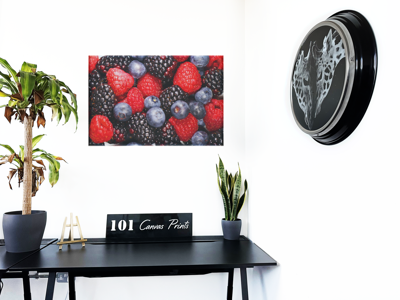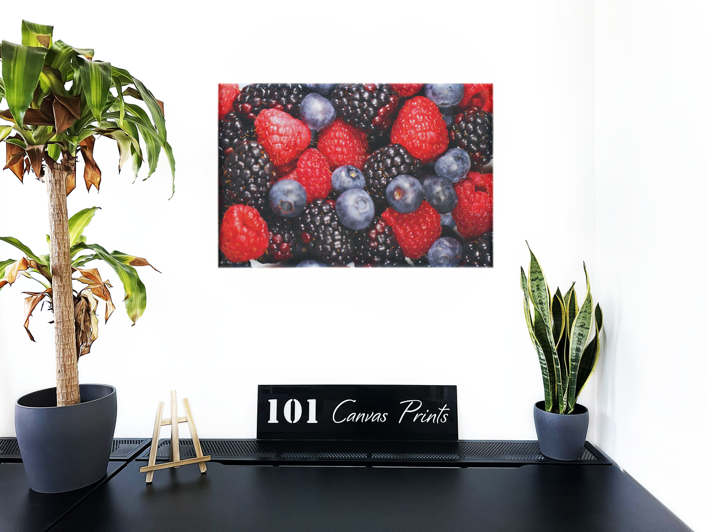 Savour the colours of summer with "Berry Medley: Nature's Bounty", an eye-catching Canvas print from 101 Canvas Prints. Our skilled photography team has artfully arranged a tempting assortment of fresh berries, creating a composition that's as visually appealing as it is appetising.