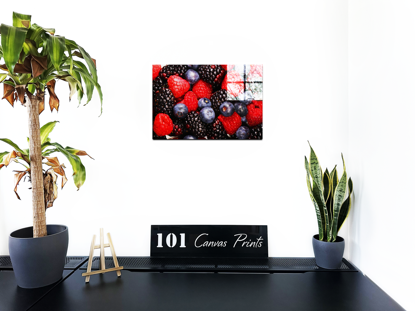 Savour the colours of summer with "Berry Medley: Natures Bounty", an eye-catching canvas print from 101 Canvas Prints. Our skilled photography team has artfully arranged a tempting assortment of fresh berries, creating a composition that's as visually appealing as it is appetising.