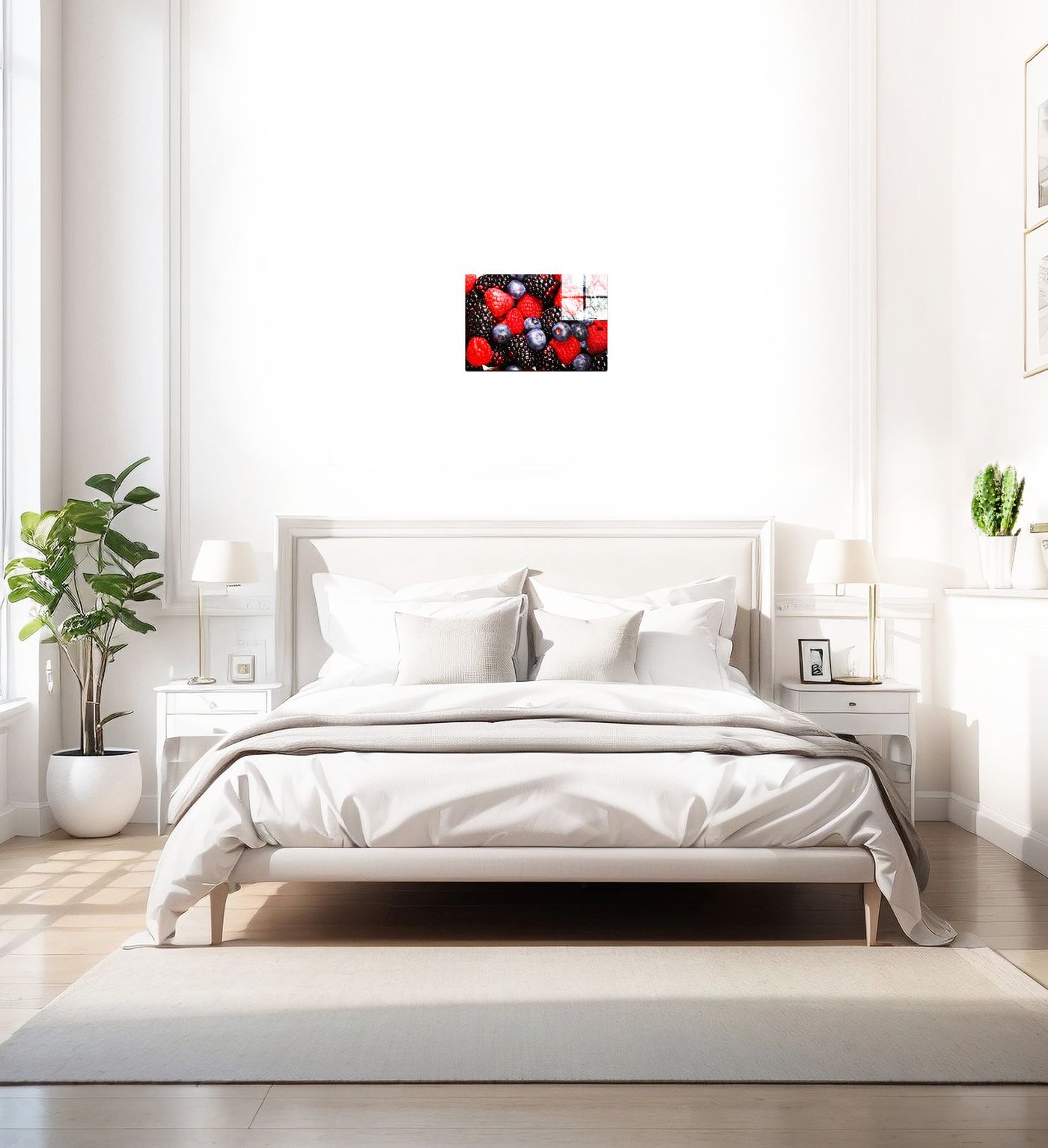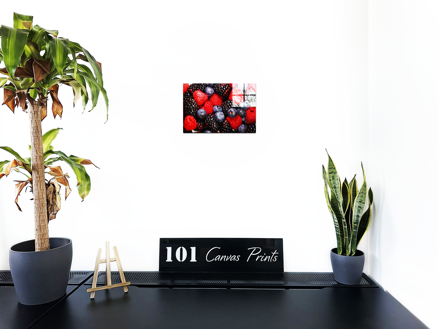 Savour the colours of summer with "Berry Medley: Natures Bounty", an eye-catching canvas print from 101 Canvas Prints. Our skilled photography team has artfully arranged a tempting assortment of fresh berries, creating a composition that's as visually appealing as it is appetising.