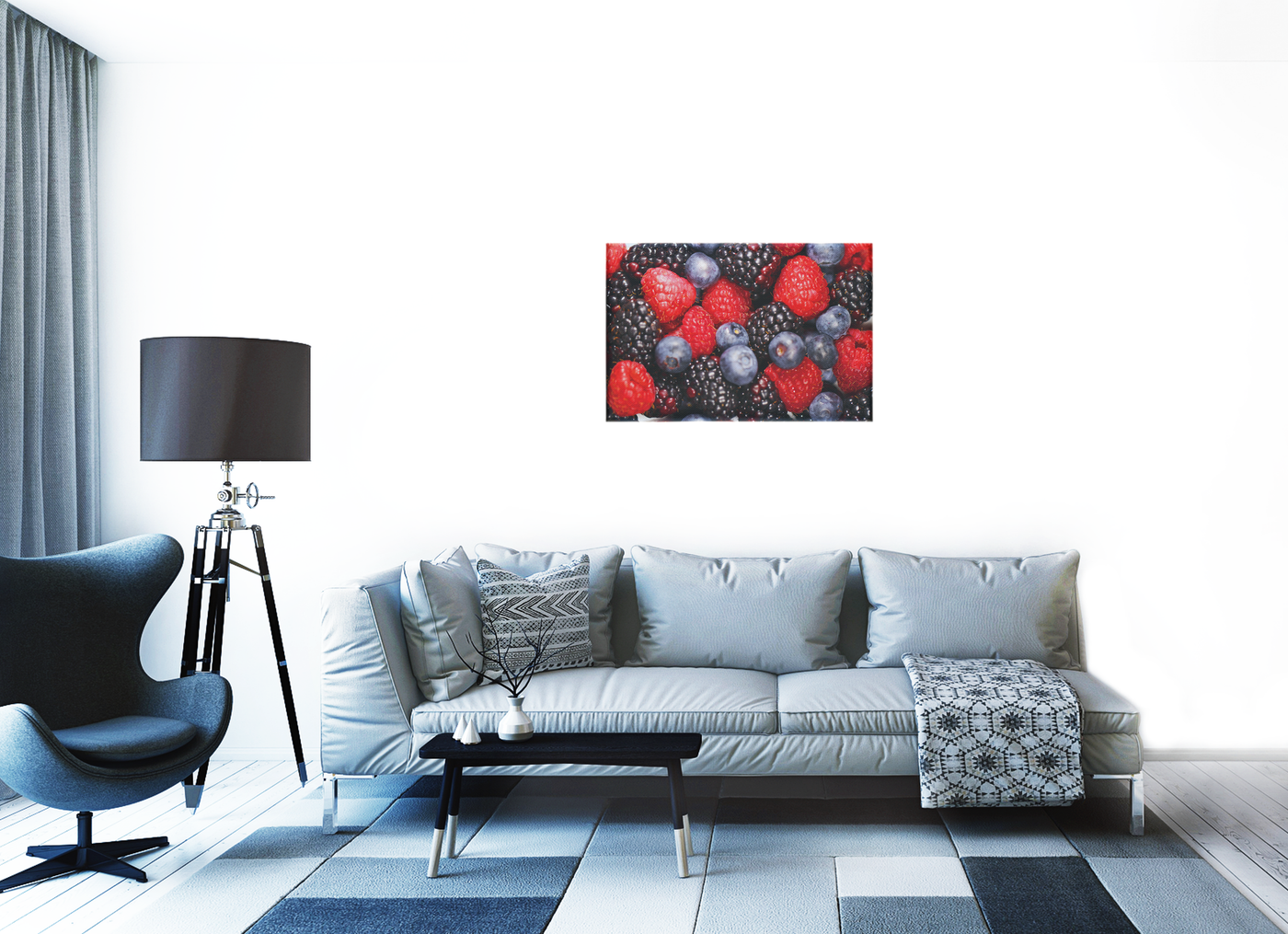 Our advanced printing techniques ensure that the vibrant colours and intricate details of this fruity scene are faithfully reproduced on Canvas. The rich reds, deep purples, and luscious blacks create a symphony of colour that's sure to catch the eye and stimulate the appetite.