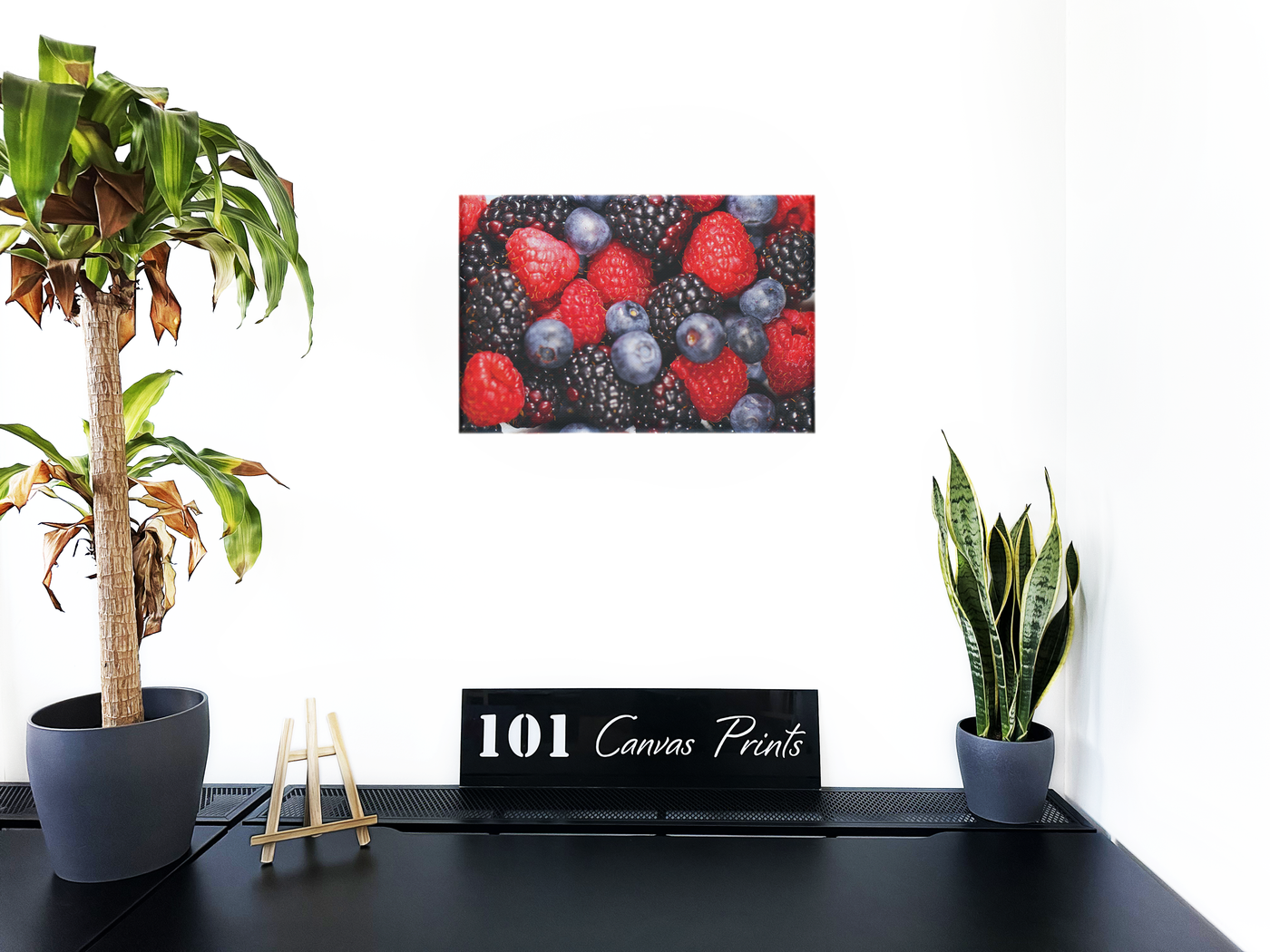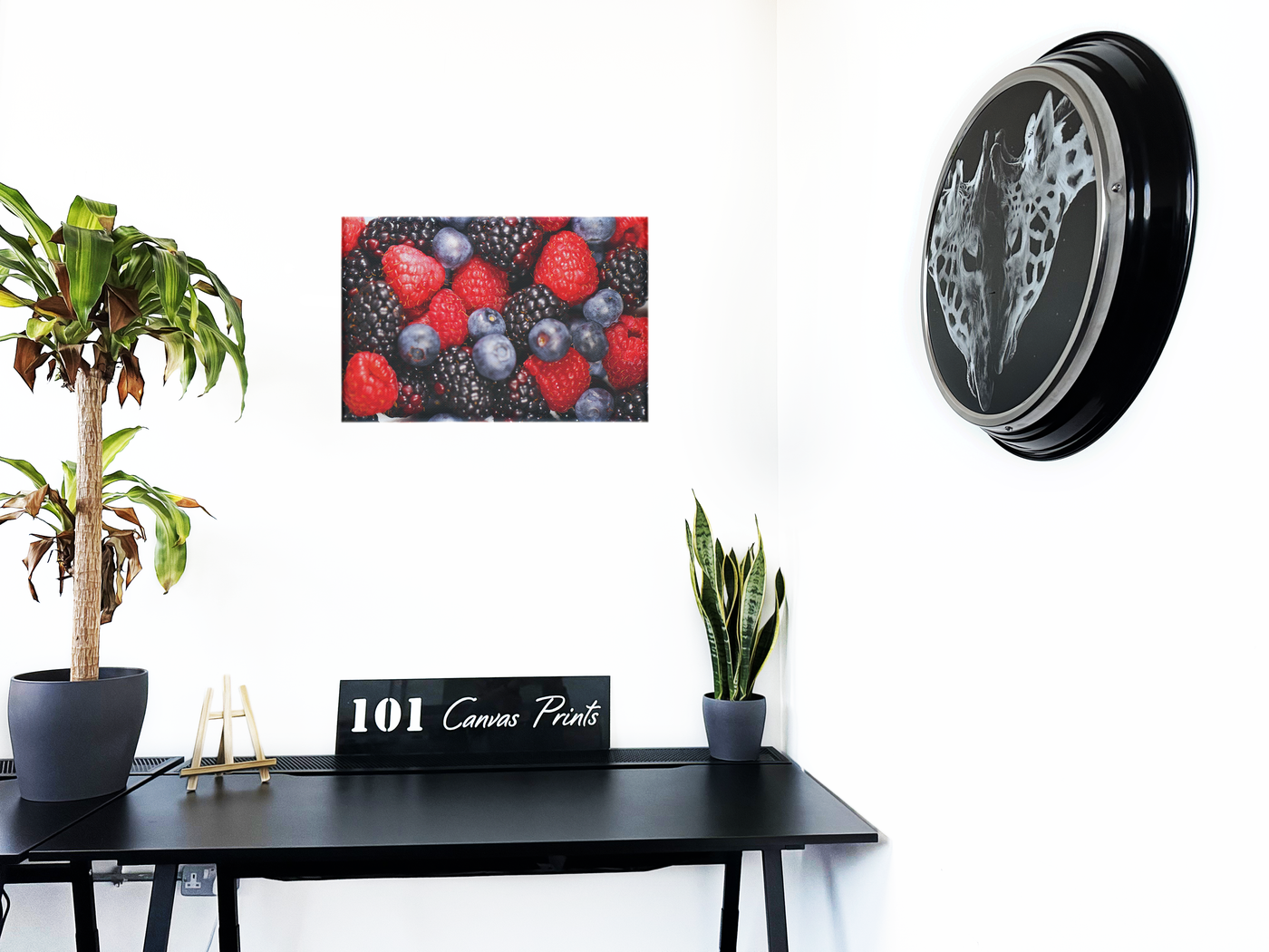 Savour the colours of summer with "Berry Medley: Nature's Bounty", an eye-catching Canvas print from 101 Canvas Prints. Our skilled photography team has artfully arranged a tempting assortment of fresh berries, creating a composition that's as visually appealing as it is appetising.