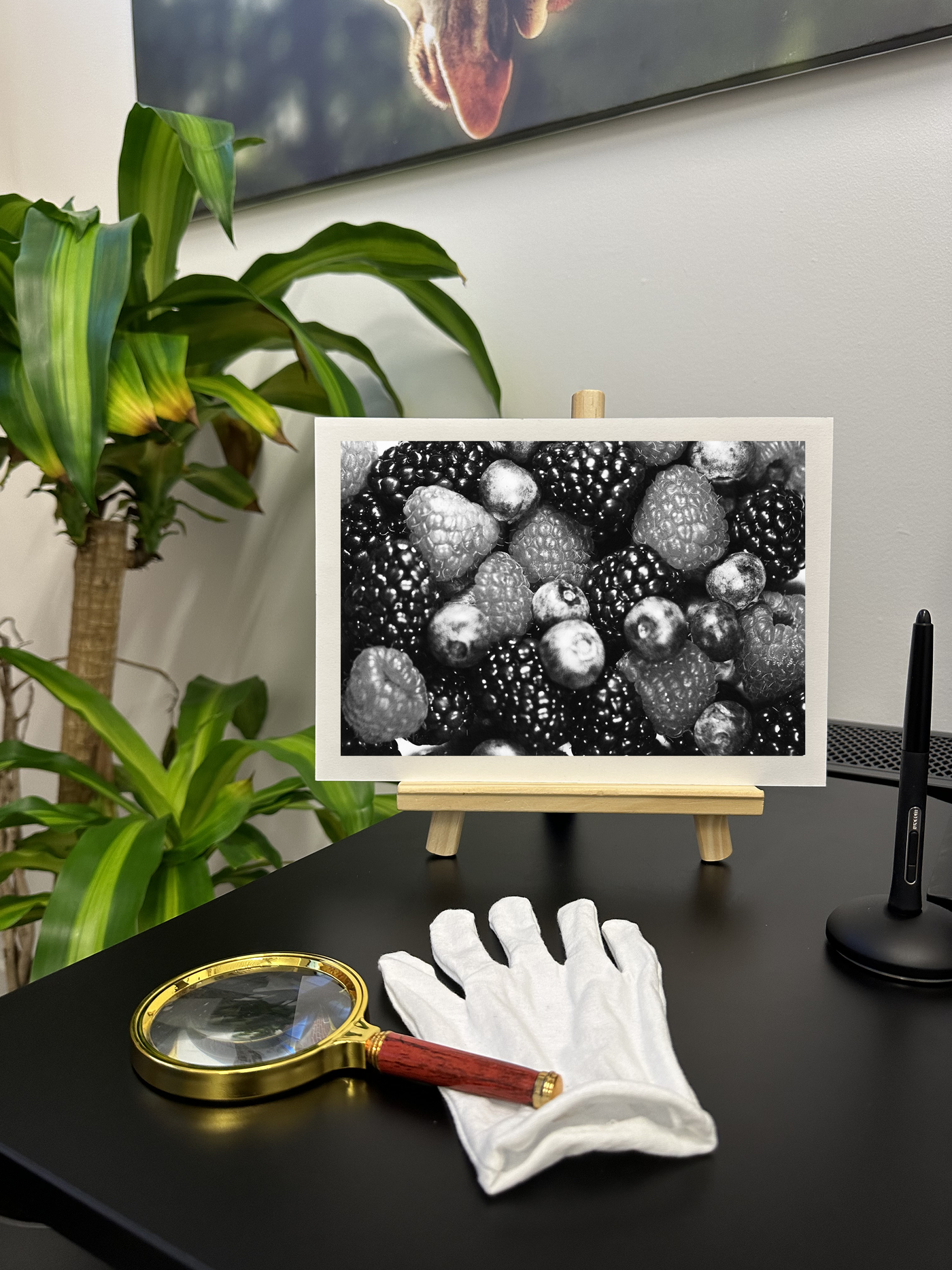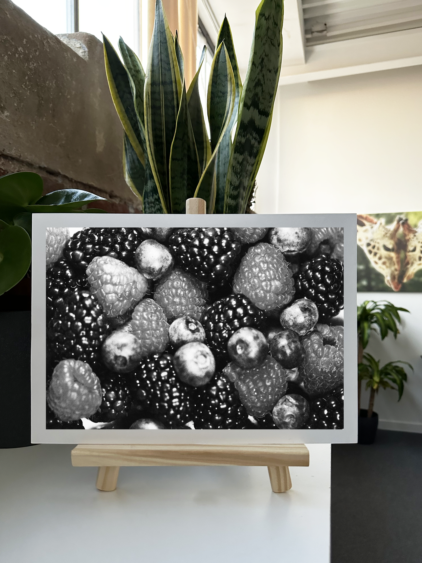 Our advanced printing techniques ensure that the vibrant and intricate details of this fruity scene are faithfully reproduced on Fine Art paper. The Monochrome tones create a symphony of tonality that's sure to catch the eye and stimulate the appetite.