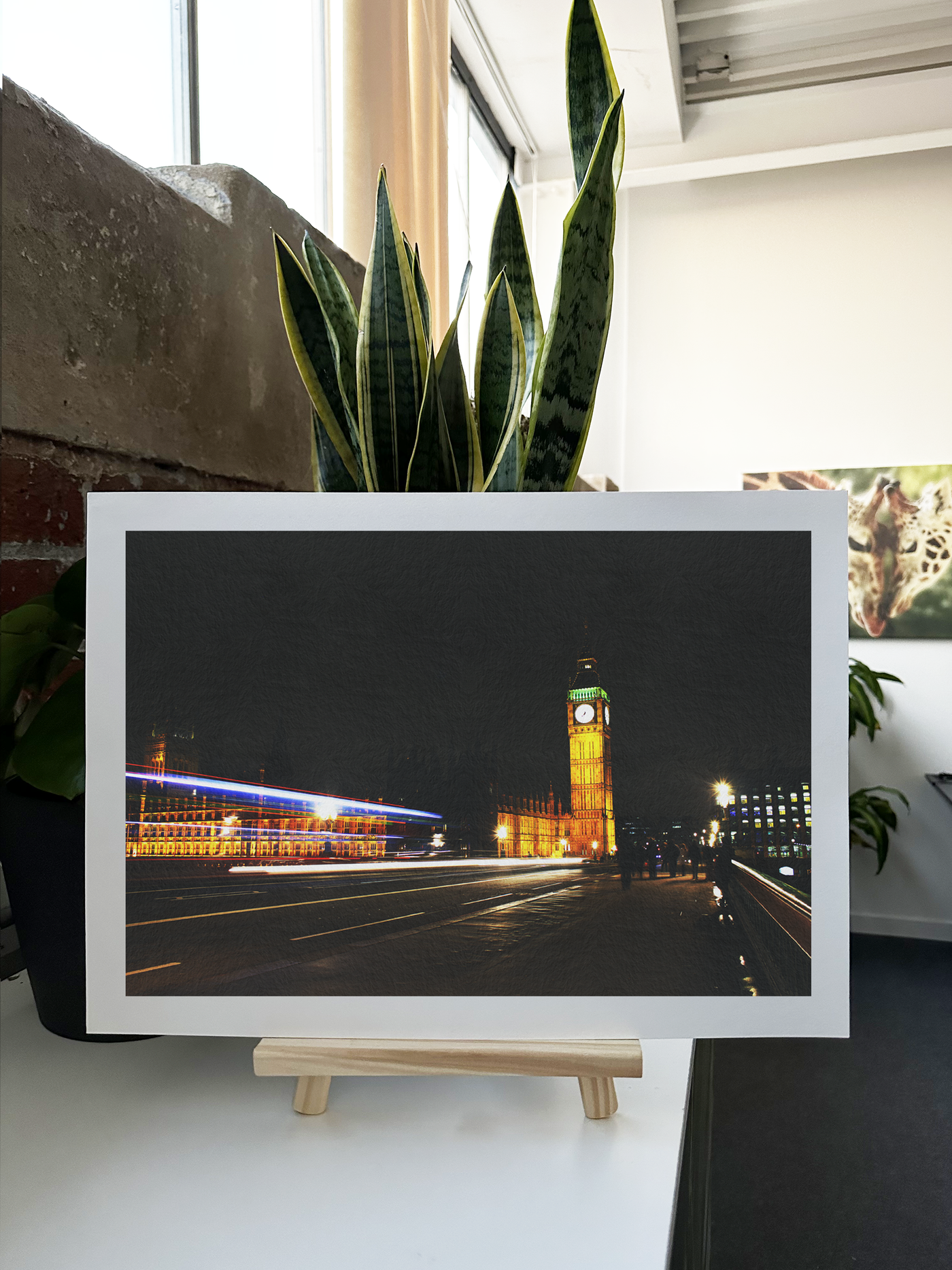 The 101 Canvas Prints team have taken a fresh angle on this classic scene by juxtaposing the heritage landmarks alongside light trails created by the surrounding hustle and bustle that makes London such a special place.