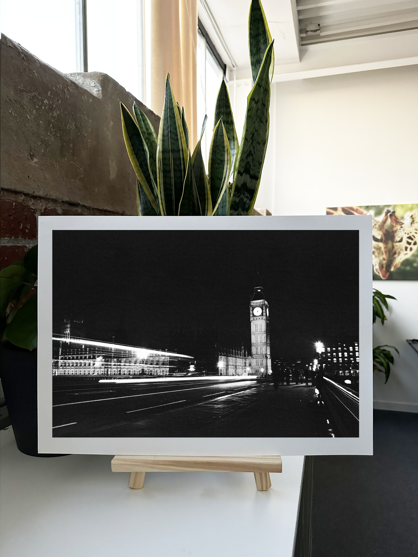 The 101 Canvas Prints team have taken a fresh angle on this classic scene by juxtaposing the heritage landmarks alongside light trails created by the surrounding hustle and bustle that makes London such a special place.