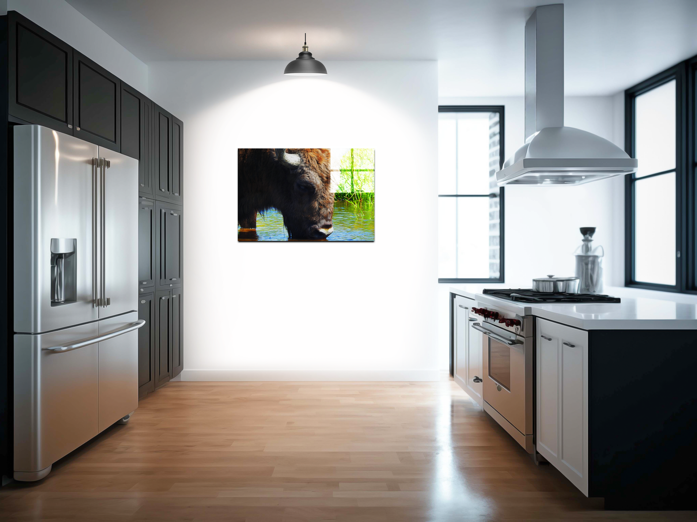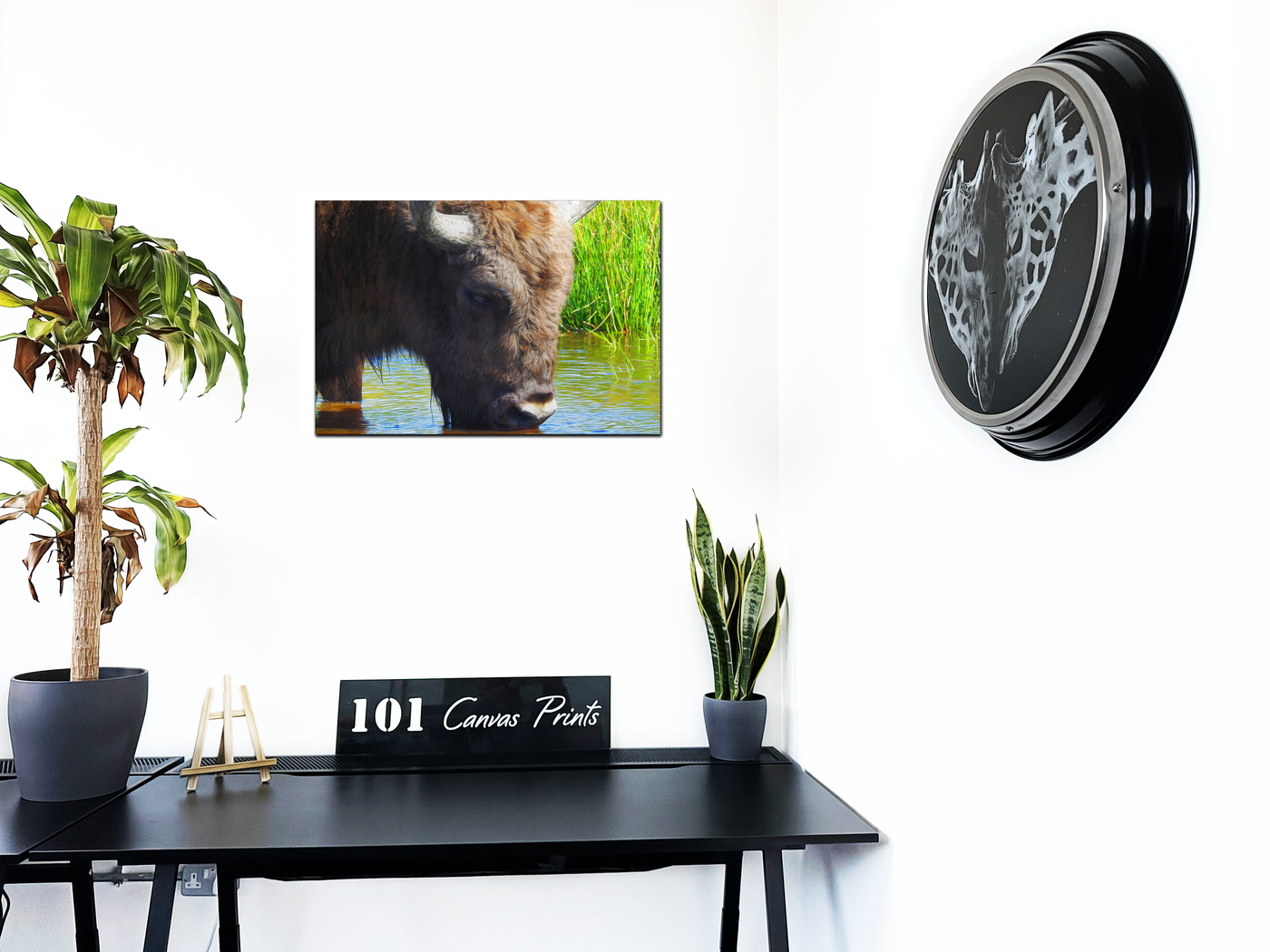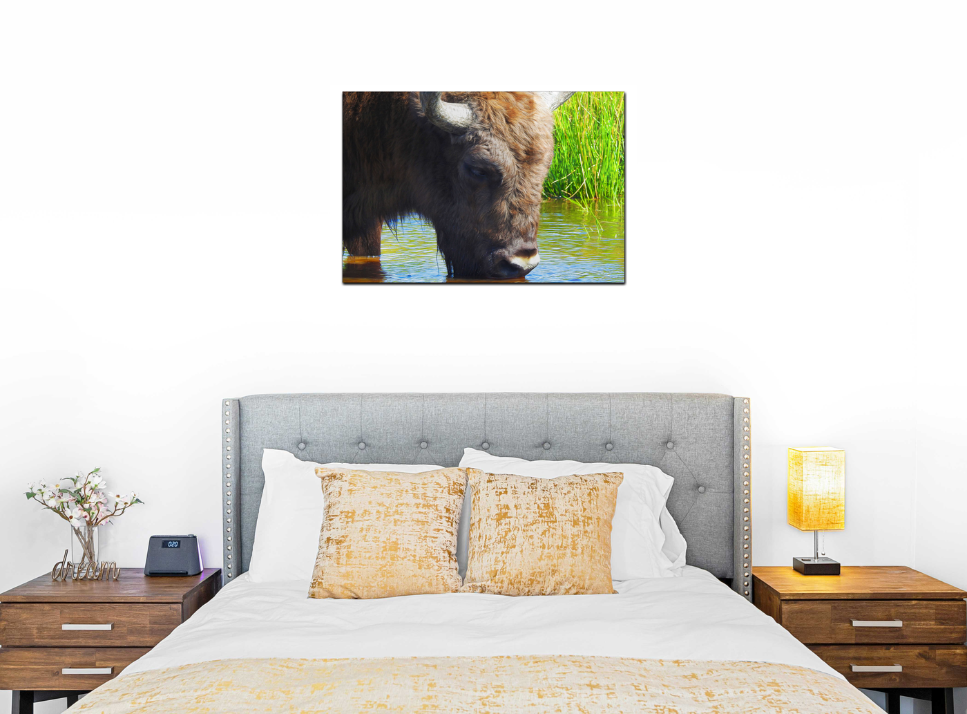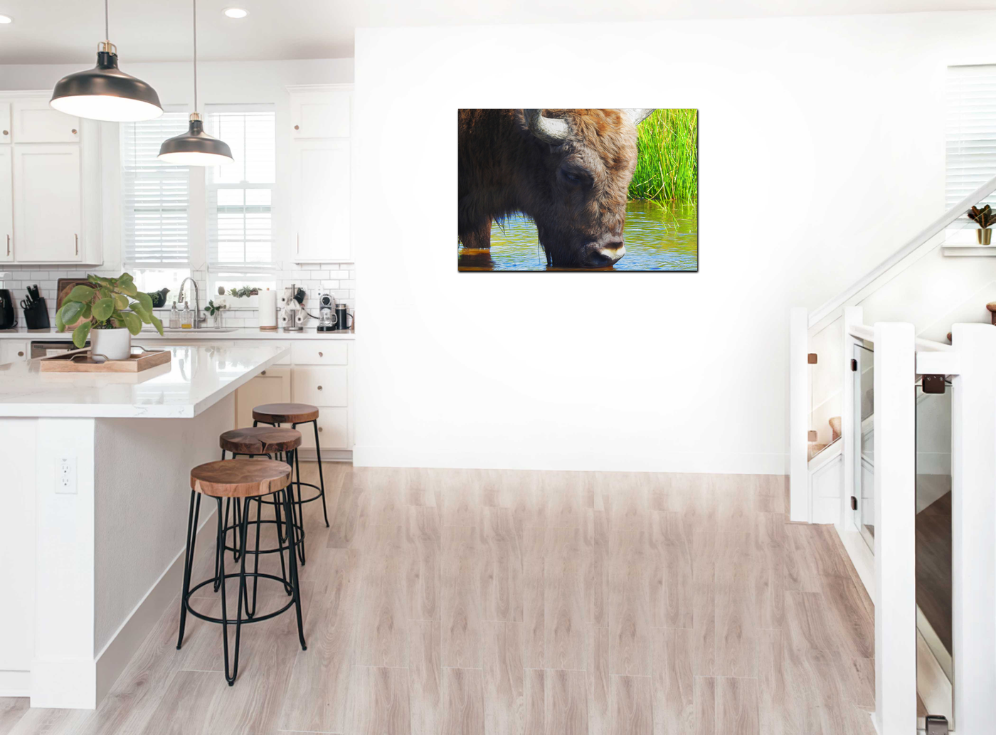 Bison At The Watering Hole - Acrylic Print - Wildlife Category