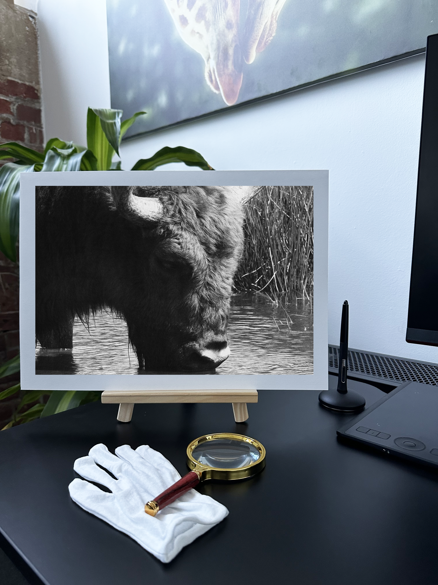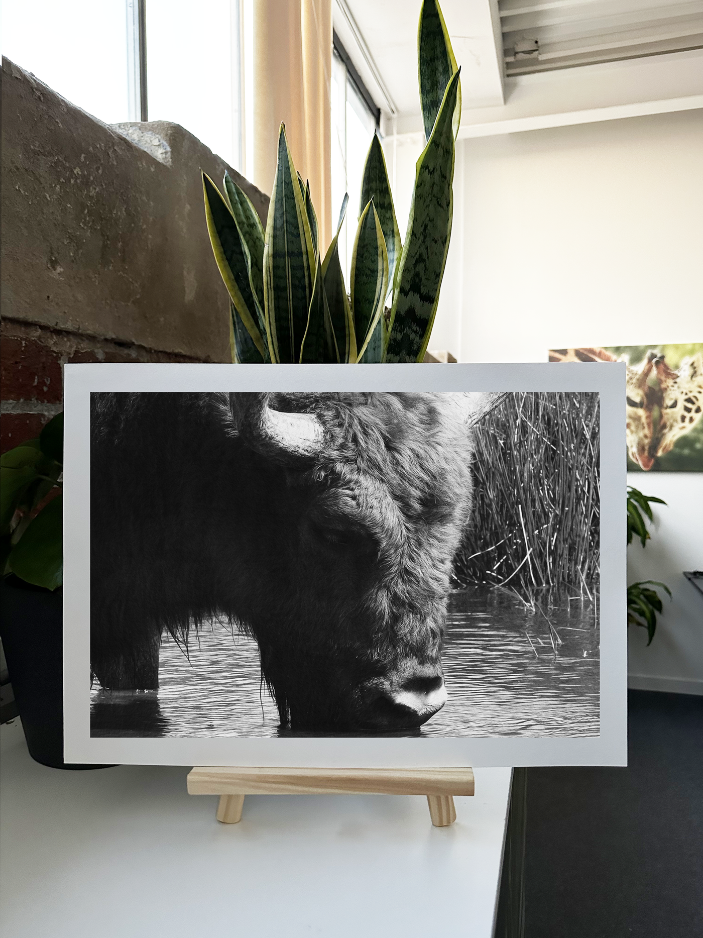 Bison At The Watering Hole - Monochrome Fine Art Print - Wildlife Category