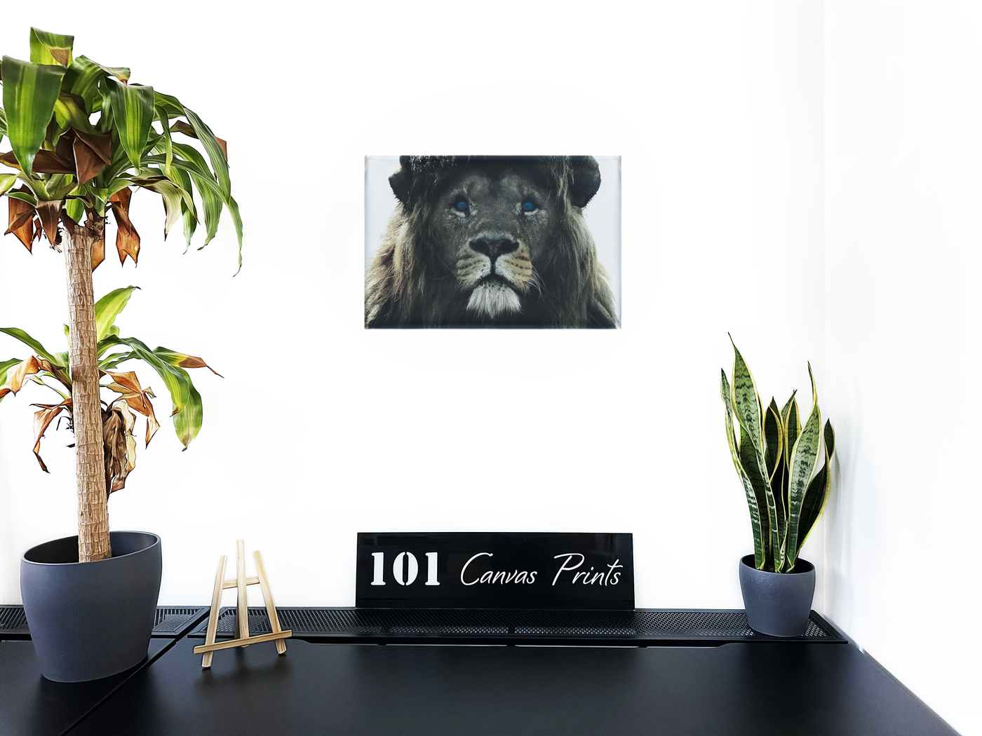 This blue eyed lion Canvas print makes a bold statement which will look great on any wall. This intense depiction of a lion's stare is created using a special photographic technique - a frame-worthy piece you'll treasure.