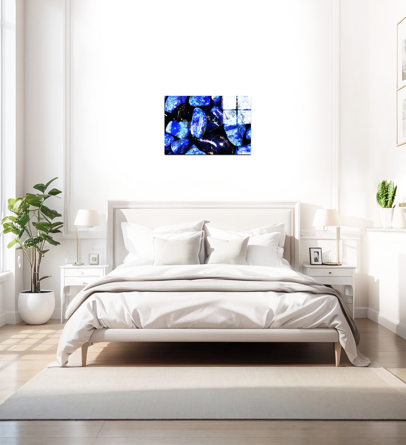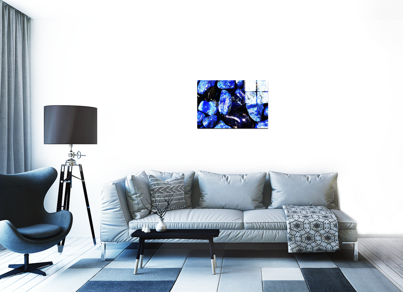 Our state-of-the-art printing process ensures that every detail is preserved, from the smooth, polished surfaces to the intricate veins and inclusions that make each stone unique. The Acrylic medium enhances the gemstones' natural lustre, making the blues appear even more vibrant and giving the impression that the stones are wet or submerged in water.