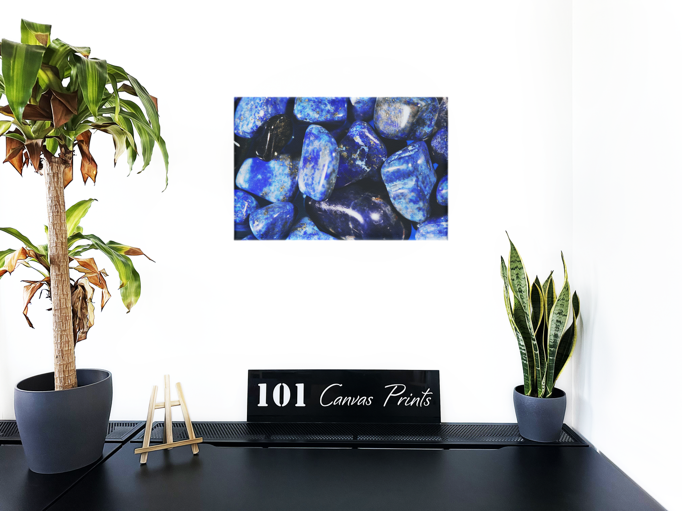 Experience the timeless allure of lapis lazuli with this exquisite Canvas print from 101 Canvas Prints. Our skilled photography team has artfully captured the essence of these prized gemstones, creating a piece that celebrates their celestial beauty and rich history.