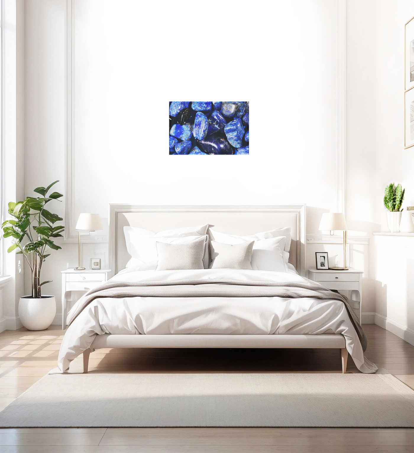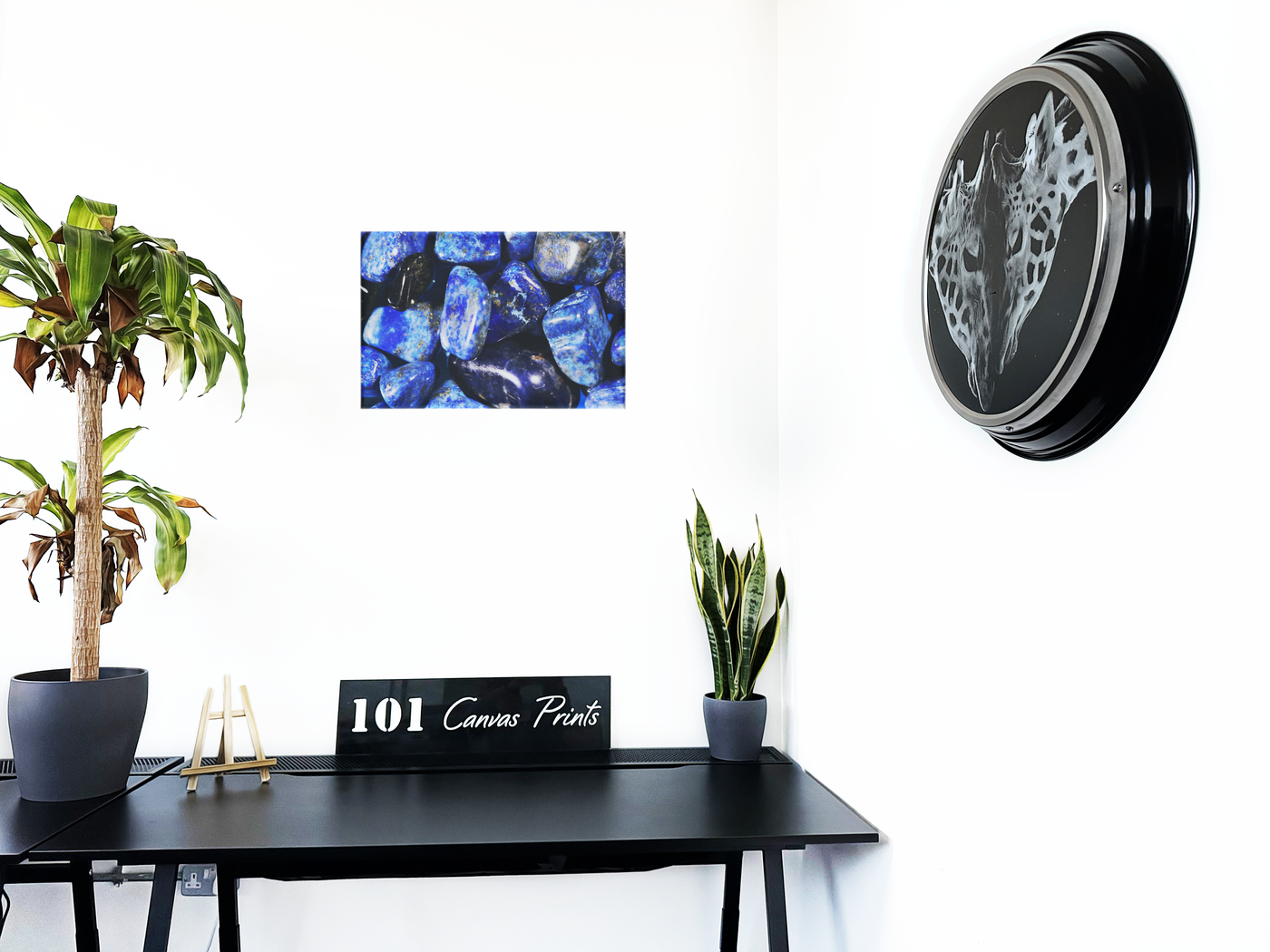 Our premium printing process ensures that every nuance of colour and detail is faithfully reproduced. The matte finish of the Canvas reduces glare, allowing viewers to appreciate the intricate patterns and textures of the stones from any angle. This print brings out the organic beauty of the lapis lazuli, emphasising its connection to the earth and its long-standing significance in art and culture.