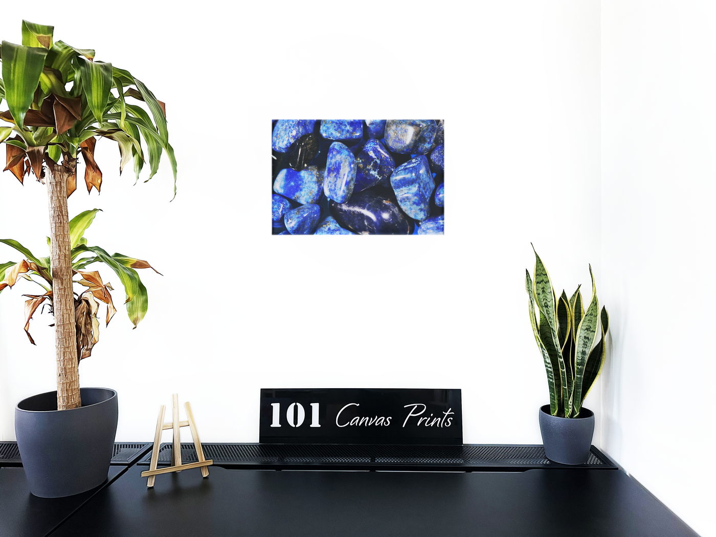 Experience the timeless allure of lapis lazuli with this exquisite Canvas print from 101 Canvas Prints. Our skilled photography team has artfully captured the essence of these prized gemstones, creating a piece that celebrates their celestial beauty and rich history.
