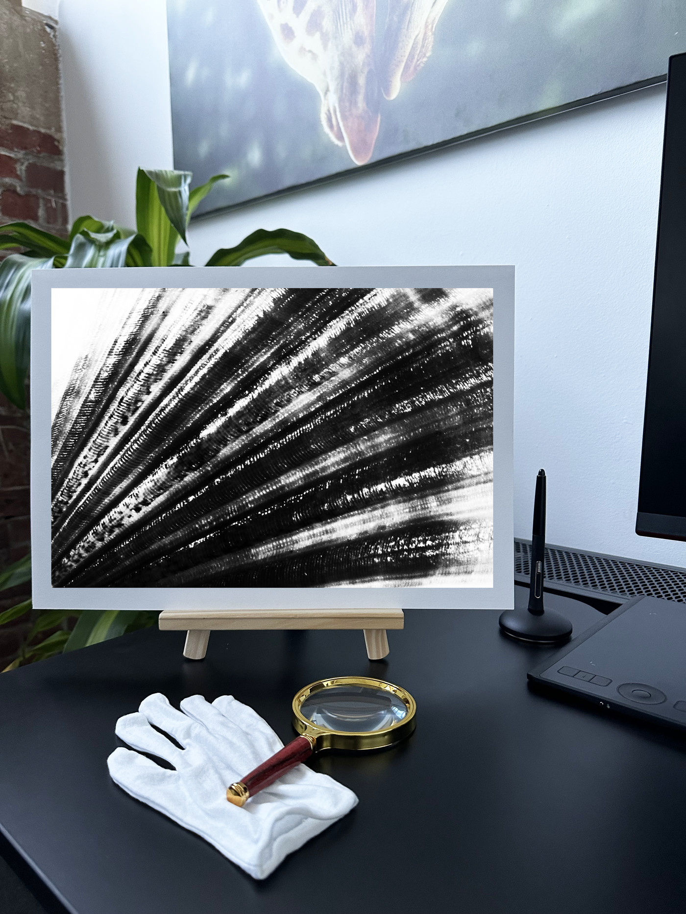 Our carefully handmade monochrome fine art prints are produced on Hahnemühle 308 matte cotton rag paper using Epson archival inks for exceptional detail and color accuracy. Each print features clean, precise edges and a textured surface that brings depth and richness to your chosen artwork, creating a gallery-worthy presentation.
