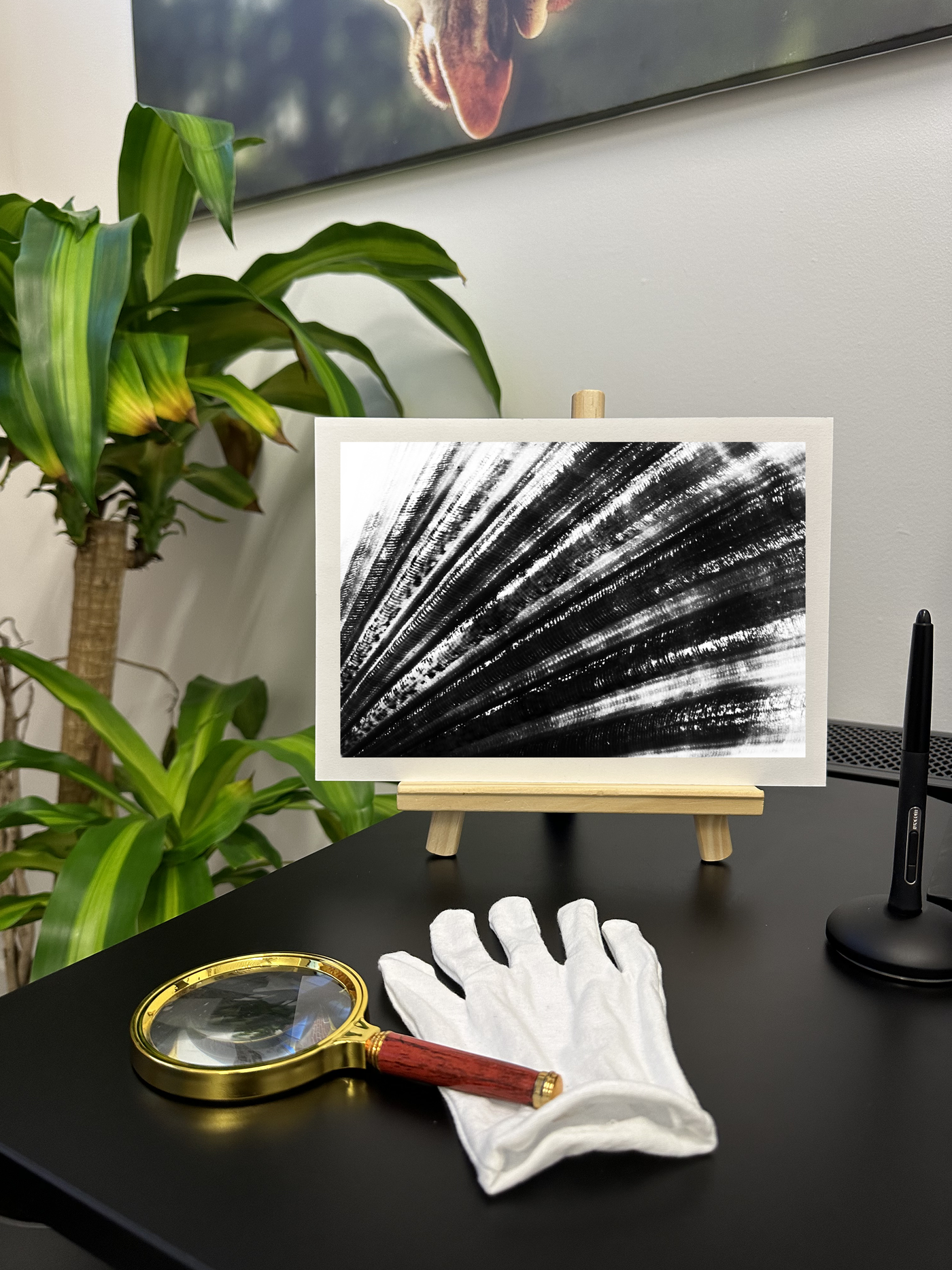 Our carefully handmade monochrome fine art prints are produced on Hahnemühle 308 matte cotton rag paper using Epson archival inks for exceptional detail and color accuracy. Each print features clean, precise edges and a textured surface that brings depth and richness to your chosen artwork, creating a gallery-worthy presentation.
