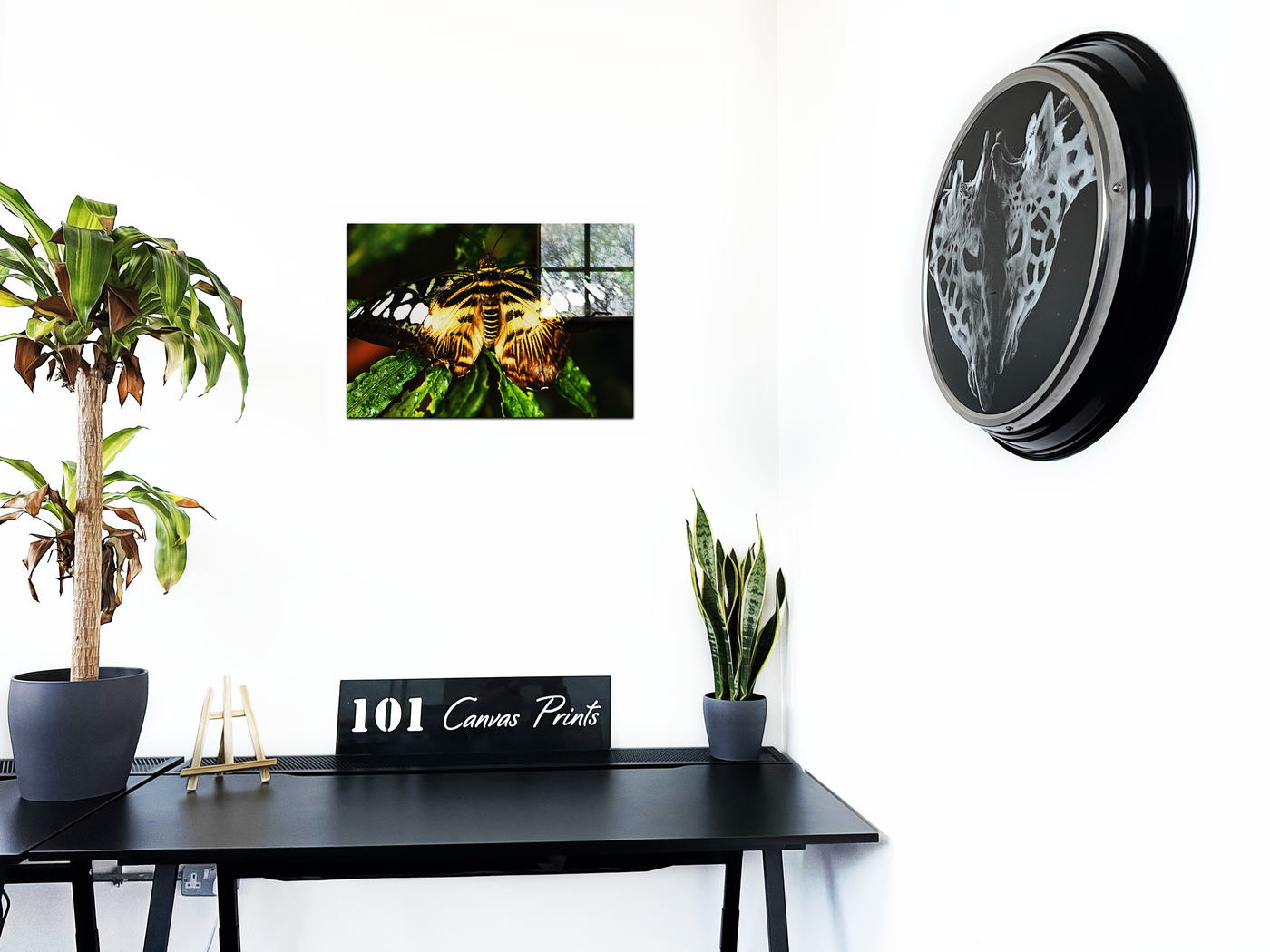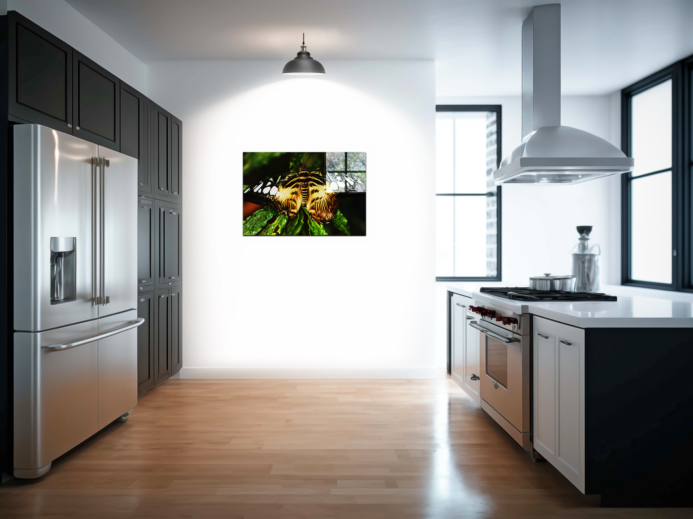 Our advanced printing process ensures that every minute detail is preserved with exceptional clarity. From the fine hairs on the butterfly's body to the droplets of water on the lush green leaves, each element is rendered with precision. The Acrylic's sleek finish adds a contemporary touch that complements the timeless beauty of this natural subject.