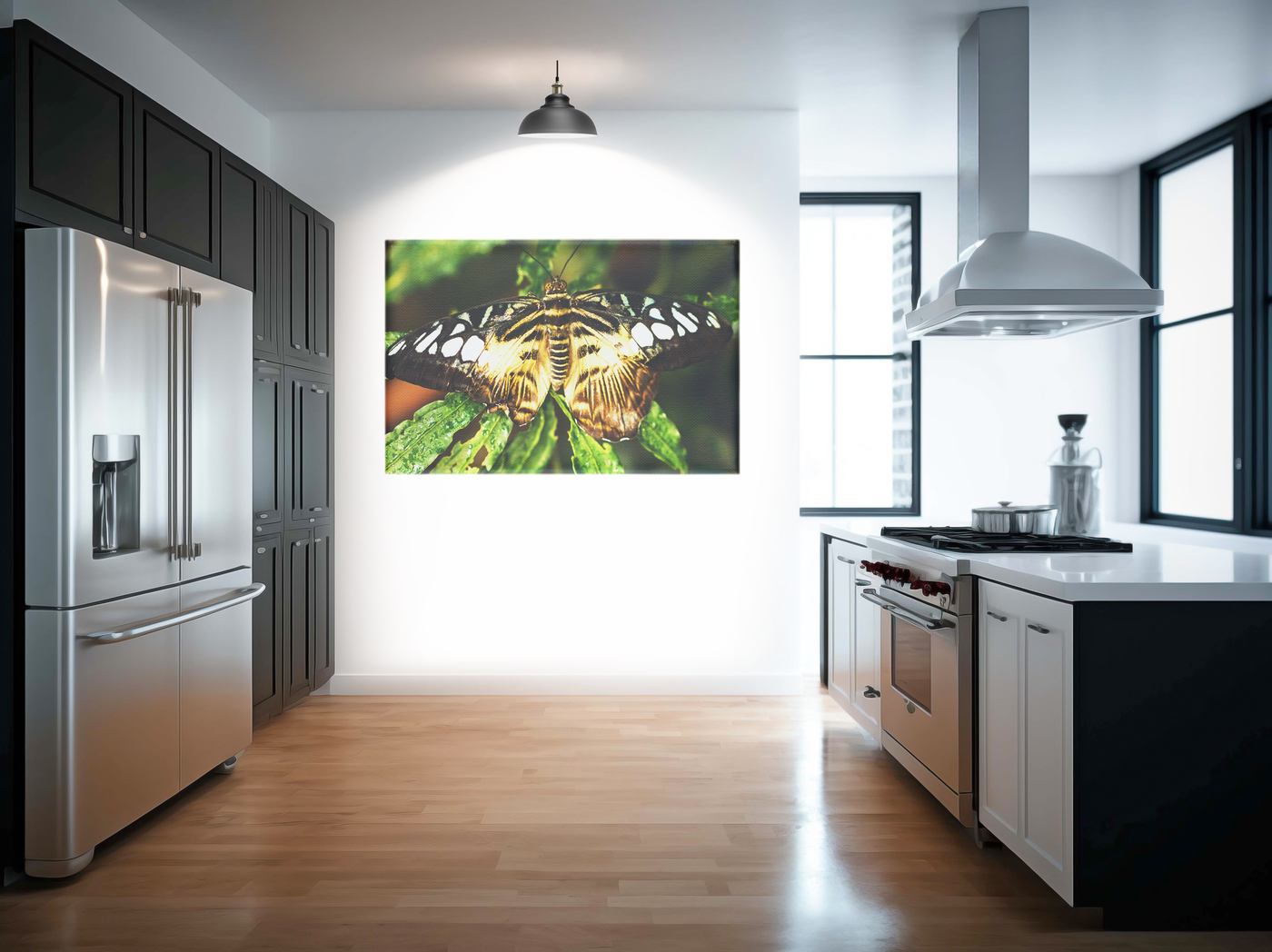 Our premium printing techniques ensure that every nuance of colour and detail is faithfully reproduced on the Canvas. The matte finish reduces glare, allowing viewers to appreciate the butterfly's complex wing patterns and the lush green backdrop from any angle. The Canvas texture also adds depth to the image, emphasising the three-dimensional quality of the butterfly and the water droplets on the leaves.