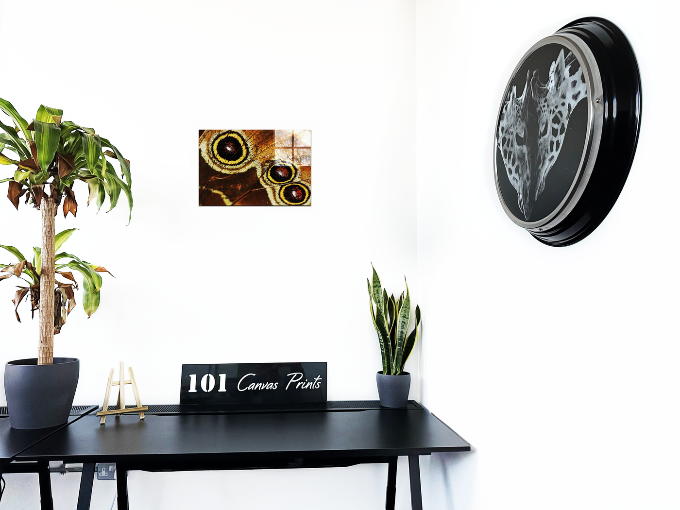 Our cutting-edge printing process ensures that every minute detail is preserved with exceptional clarity. From the fine textures of the wing scales to the subtle gradations of colour within each eyespot, every element is rendered with precision. The Acrylic's contemporary finish adds a modern touch that complements the timeless beauty of this natural subject.