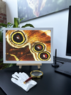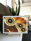 Hang this piece in your home or office to bring a touch of natural wonder and scientific curiosity to your décor. The eyespots, with their concentric circles of gold and brown create a visually striking artwork